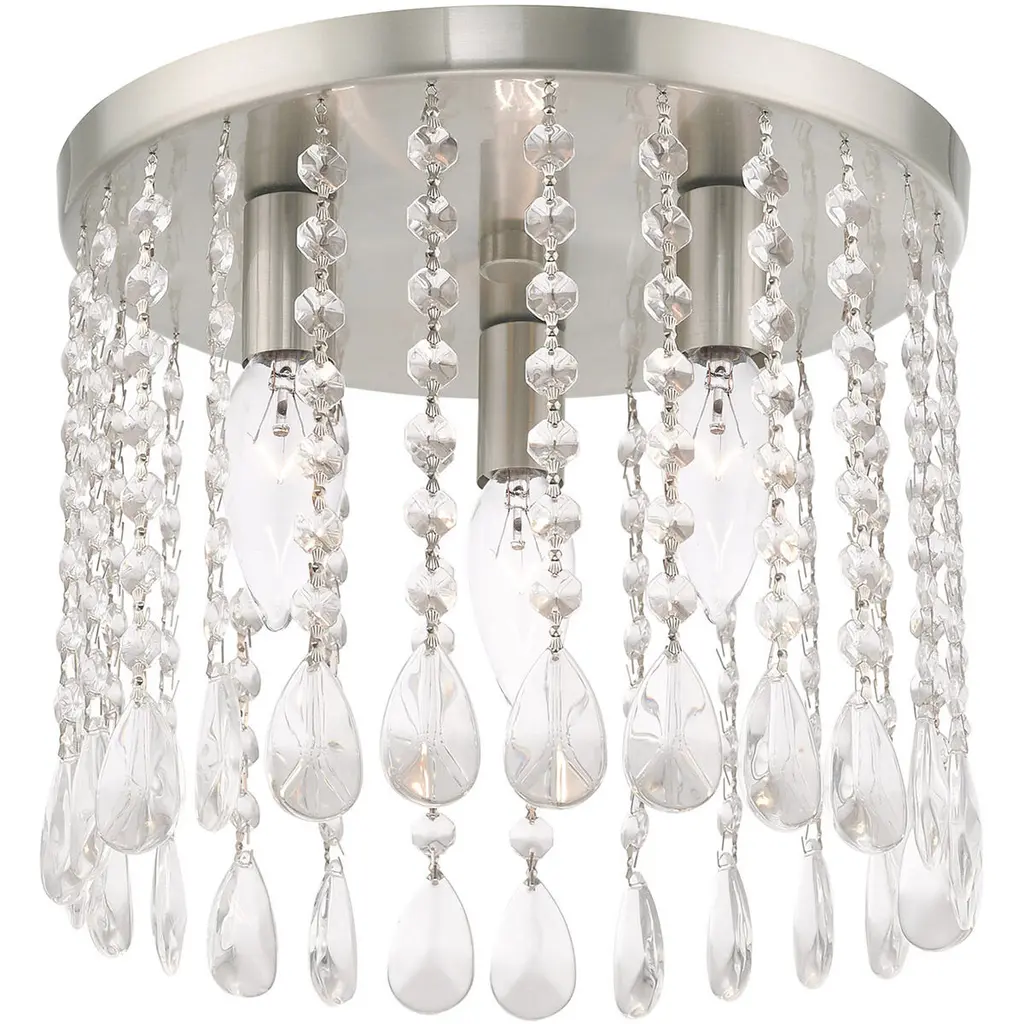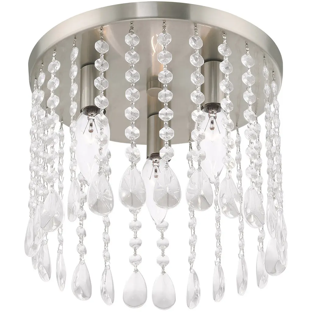 Elizabeth 3 Light 11 Inch Brushed Nickel Flush Mount Ceiling Light