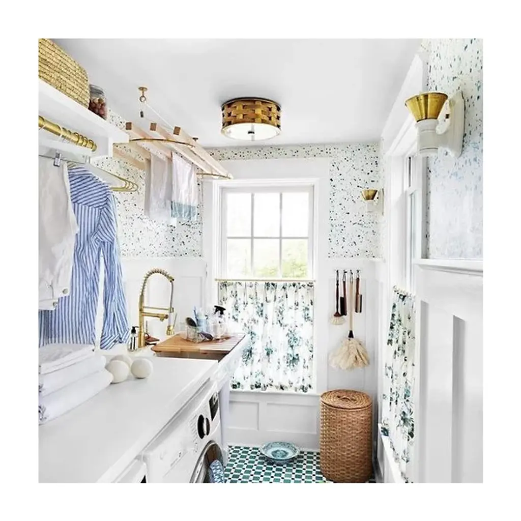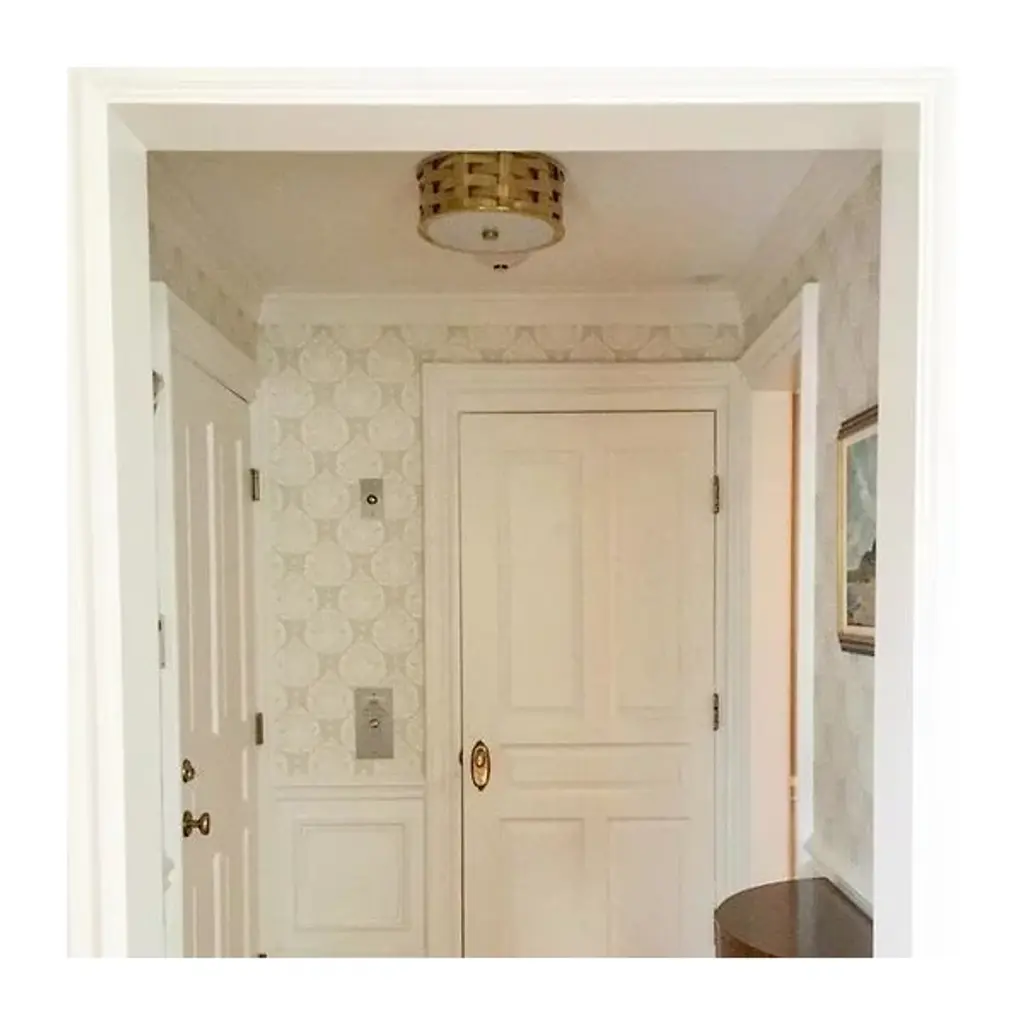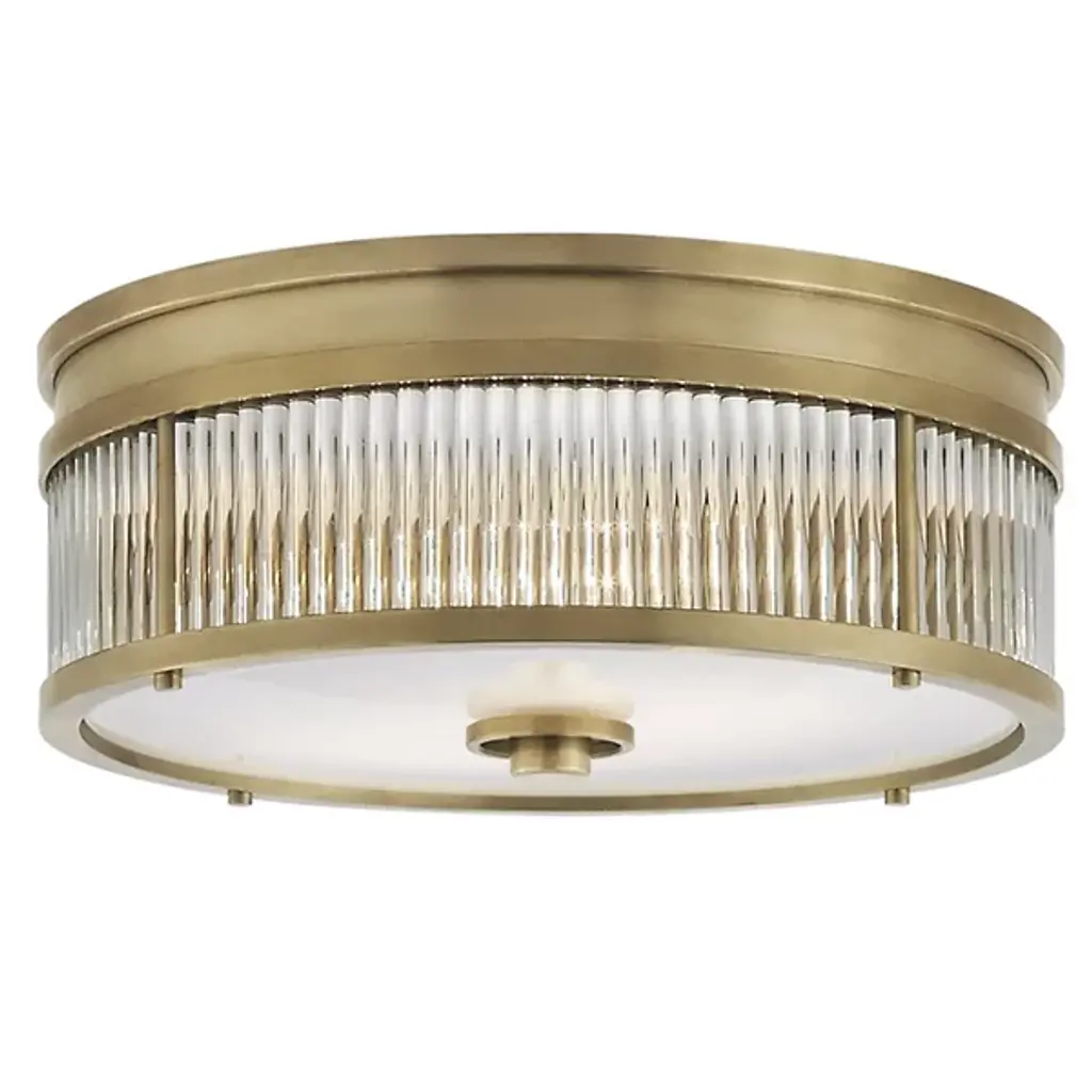 Ralph Lauren’s great fashion mind beams into the seductive weaves of the Ella Woven Flushmount from Visual Comfort Signature, formerly known as Visual Comfort, It’s a piece with a charming surface you’d likely see hung up in your size at your favorite boutique. Flatweaves move in a drum form like beautiful waves over the coast. The intersection of the weaves leaves tiny openings that let light from inside accentuate its riveting pattering. A pleasantly diffused glow shines through a glass diffuser at the base, lifting the surfaces of the room below.