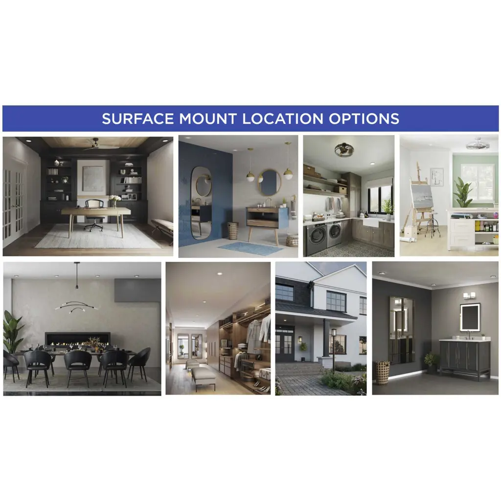 Revel in the brilliant combination of easy installation and a sleek, modern lighting aesthetic offered by our Emblem Surface Mount LED Collection. A symbol of clean, classic designs with smooth, eye-appealing curvature, Emblem provides you with familiar lighting shapes and functional features engineered for both outstanding performance and unparalleled longevity. An excellent choice for general ambient lighting, each polished design features a smooth, slightly tapered trim ring surrounding a single, integrated LED light source. Each trim ring is available in two different sizes and finishes to help meet your unique design needs. Enjoy the unmatched level of glare control offered by the fixture’s diffused polycarbonate lens that also hides any unwanted LED pixilation. Each light fixture is home to an integrated AC LED light engine that seamlessly installs to a variety of ceiling pan junction boxes to give you added flexibility when it comes to creating your design vision. The surface mount will also satiate the cravings of any environmentally-aware and cost-savvy buyer with the fixture's long-lasting, 50,000-hour LED life span and 80% energy savings.