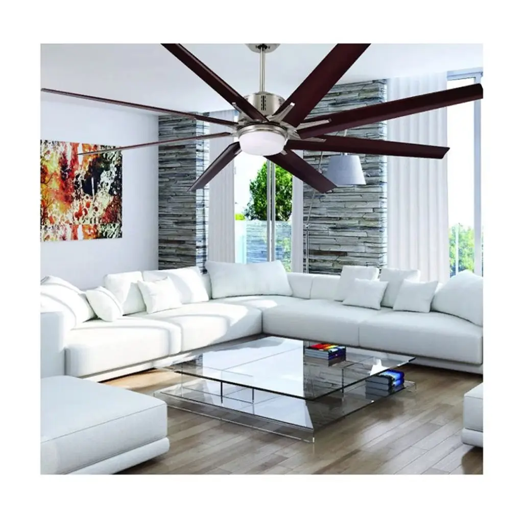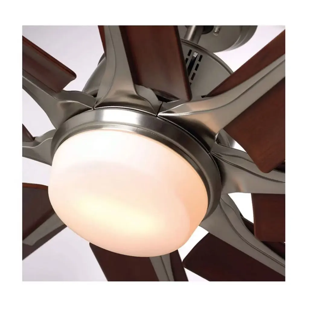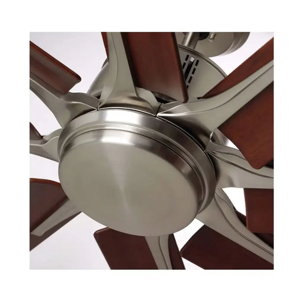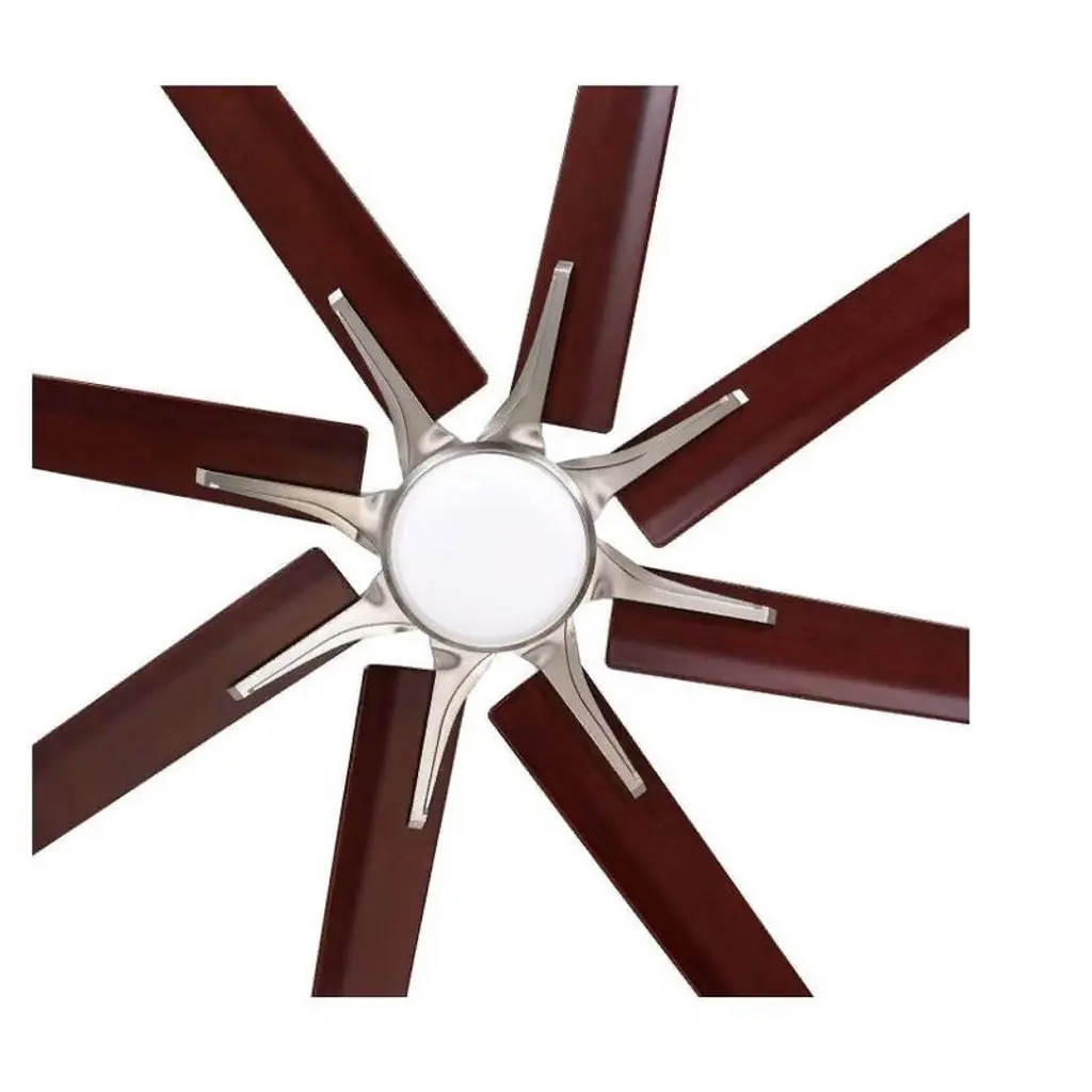 Emerson Aira Eco 72-inch Modern Ceiling Fan, 8-Blade Ceiling Fan with LED Lighting and 6-Speed Wall Control This 72-inch Aira Eco ceiling fan delivers powerful airflow with a modern aesthetic. Featuring a brushed steel finish, eight walnut ABS blades, and an integrated LED light, it's ideal for spacious indoor areas like living rooms or great rooms. Key Features: • 72-inch blade span with 15° blade pitch • 8 All-Weather ABS Plastic Walnut blades • Integrated dimmable LED light with opal matte glass • Includes 6-speed wall control with reverse function • Quiet and energy-efficient EcoMotor • Includes 6" downrod for ceiling mount • UL Listed for indoor use Specifications: • Motor: Super Efficient DC EcoMotor • Blade Span: 72 Inches • RPM Range: 30 to 100 RPM • Speeds: 6 • Light Output: 1 x 18W LED, 1500 Lumens, 3000K, 90+ CRI • Voltage: 110V • Mounting: Downrod (Flushmount not supported) • Leadwire Length: 80" • Finish: Brushed Steel • Indoor Use Only