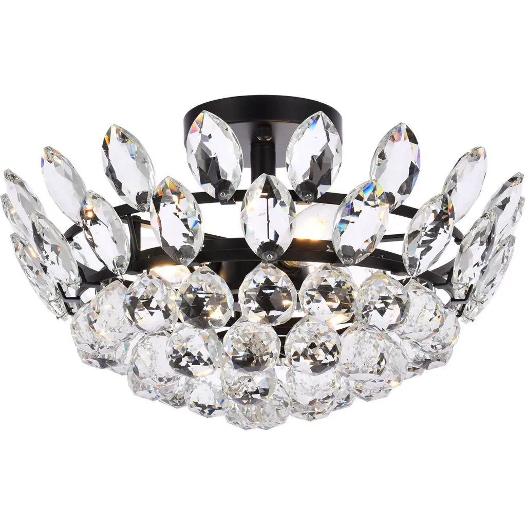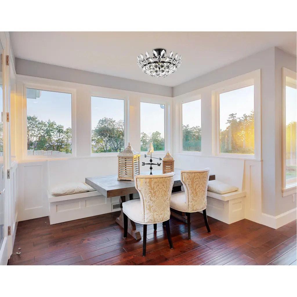 Install this flush mount in any room to give an elegant look. This stunning light features hand painted finish and clear brillant crystals which gives a classy look. Set a cozy atmosphere when you switch on this dazzling fixture and captivate your guests.