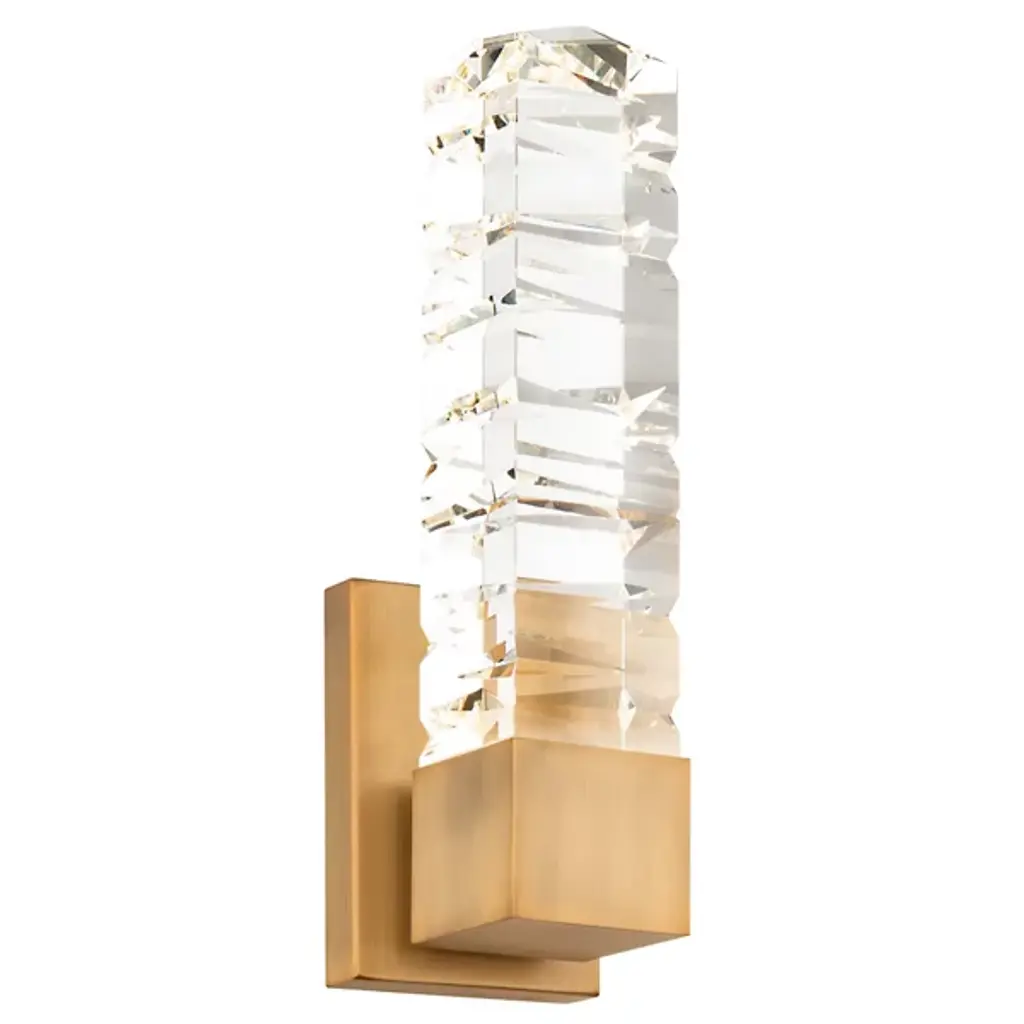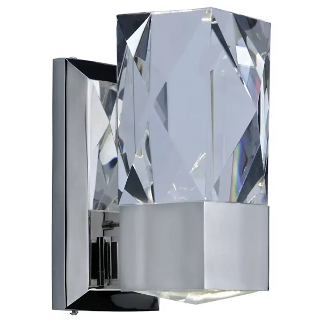 Inspired by the look and luxury of cityscapes, the Empire 2-Light LED Wall Sconce by Studio M brings an extravagant charm to your living space. Its faceted-cut crystal steals the show, standing tall within a Polished Nickel holder that is supported by a tapered, rectangular wallplate. The lighting is equally decadent, coming from an integrated LED source that sits flush against the holder and shines out through the crystal for a stunning refractive display.