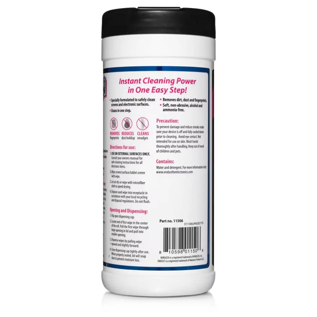 1 pack, clean and protect your valuable electronic screens and devices, keeping them in new condition with Endust for electronics screen and electronics cleaning wipes. These pre-moistened and streak-free anti-static wipes will rid your electronic screens of dust, dirt, and fingerprints. Specially formulated to safely clean your lcd and plasma screens, tablets, smartphones, and remote controls. The debris will cling to the fabric on the wipe, rather than leaving the debris on your device, resulting in a flawless, streak-free surface. Each 7" x 5" wipe removes fingerprints, reduces dust build-up, and cleans smudges, leaving a mirror-like shine. Soft, non-abrasive alcohol and ammonia-free formula are specially formulated to safely clean screens and electronic surfaces. Endust for electronics screen and electronics cleaning wipes contain 70-count pre-moistened wipes to clean all household and office electronic surfaces. Directions for use, for best results, use one wipe on smaller devices such as tablets, smartphones, and remote controls. For these smaller devices, allow the wipe to dry slightly and wipe until the wipe is dry. For larger surfaces, such as TV screens and monitors, more than one wipe may be necessary. For all devices, always consult your owner's manual before use. Wipe screen/surface/tablet screen with a wipe. Let air dry, or use a microfiber towel (not included) to speed up drying. Dispose of wipe into a receptacle in accordance with your local recycling and disposal regulations. Never flush wipe. To open the container, flip open the dispensing cap. Locate the end of the first wipe in the center of the roll. Pull the first wipe through a large opening in the lid and pull into a smaller opening. Dispense wipes by pulling the wipe upward and slightly forward. Close dispensing cap tightly after use. When properly sealed, the lid will snap shut to prevent moisture loss. Precaution, to prevent damage and reduce streaks, make sure your device is off and fully cooled down prior to cleaning.