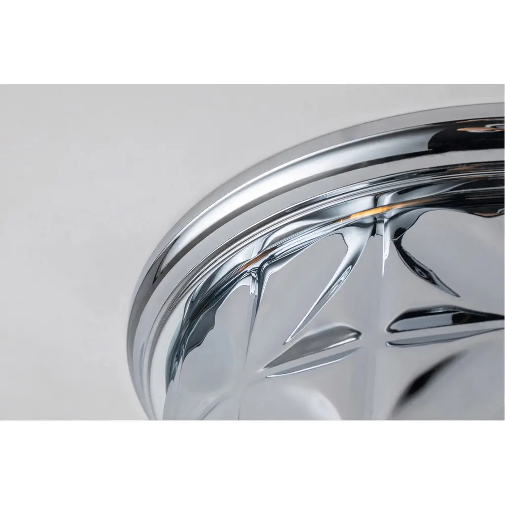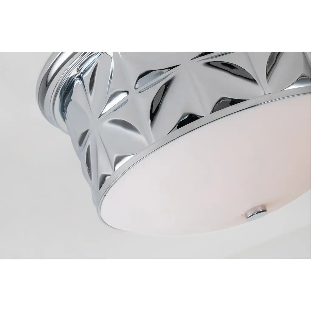Always looking to add texture and dimension to a room, we created the perfect 17.5 inch round flush mount ceiling light. The sophisticated design of this lighting fixture uses shape and its polished chrome finish to add traditional design and eye-catching appeal. Approved for damp location, this flush mount will work in a bathroom design as well as a kitchen or living room space. The creamy white glass allows just the right amount of light to create a beautiful, flattering ambiance giving off just the right amount of light.