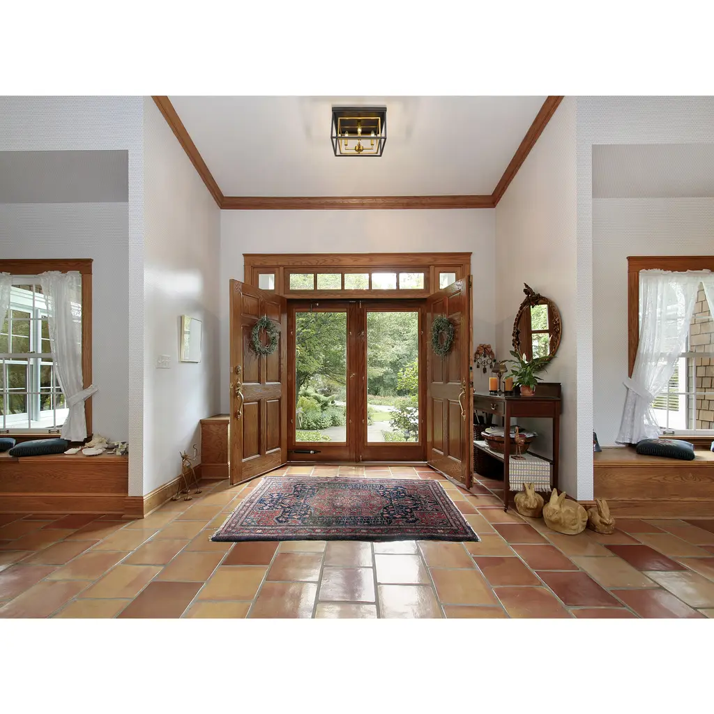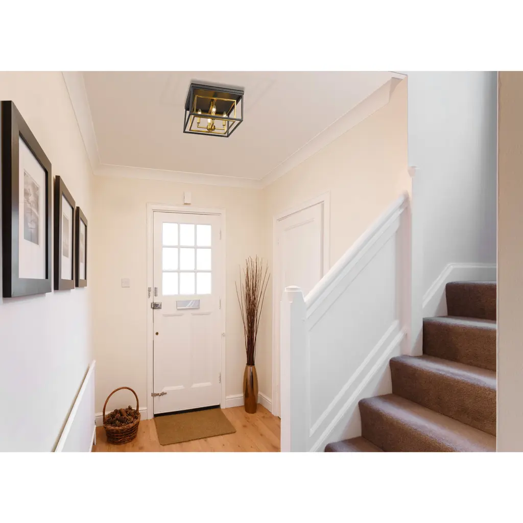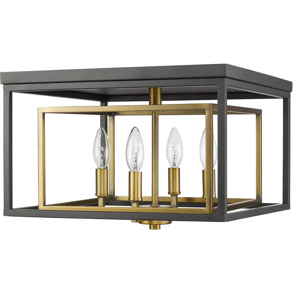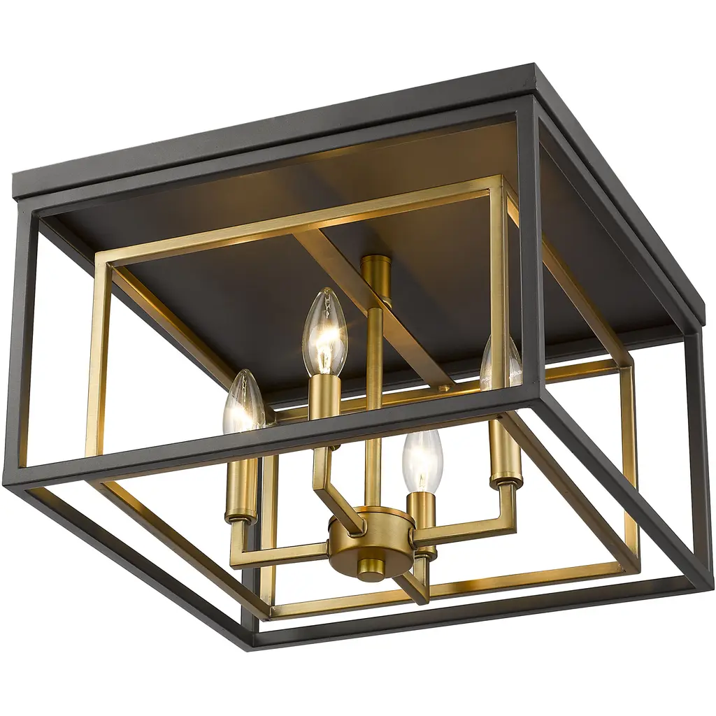 A steampunk inspired space gets a brilliant architectural twist with layered geometric cubes. Timeless olde brass and bronze finishes bring a feel of vintage inspiration in this four-light flush mount design.