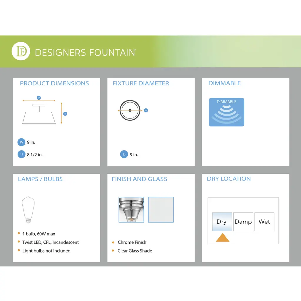 Ezra 1 Light 9 Inch Chrome Flushmount Ceiling Light