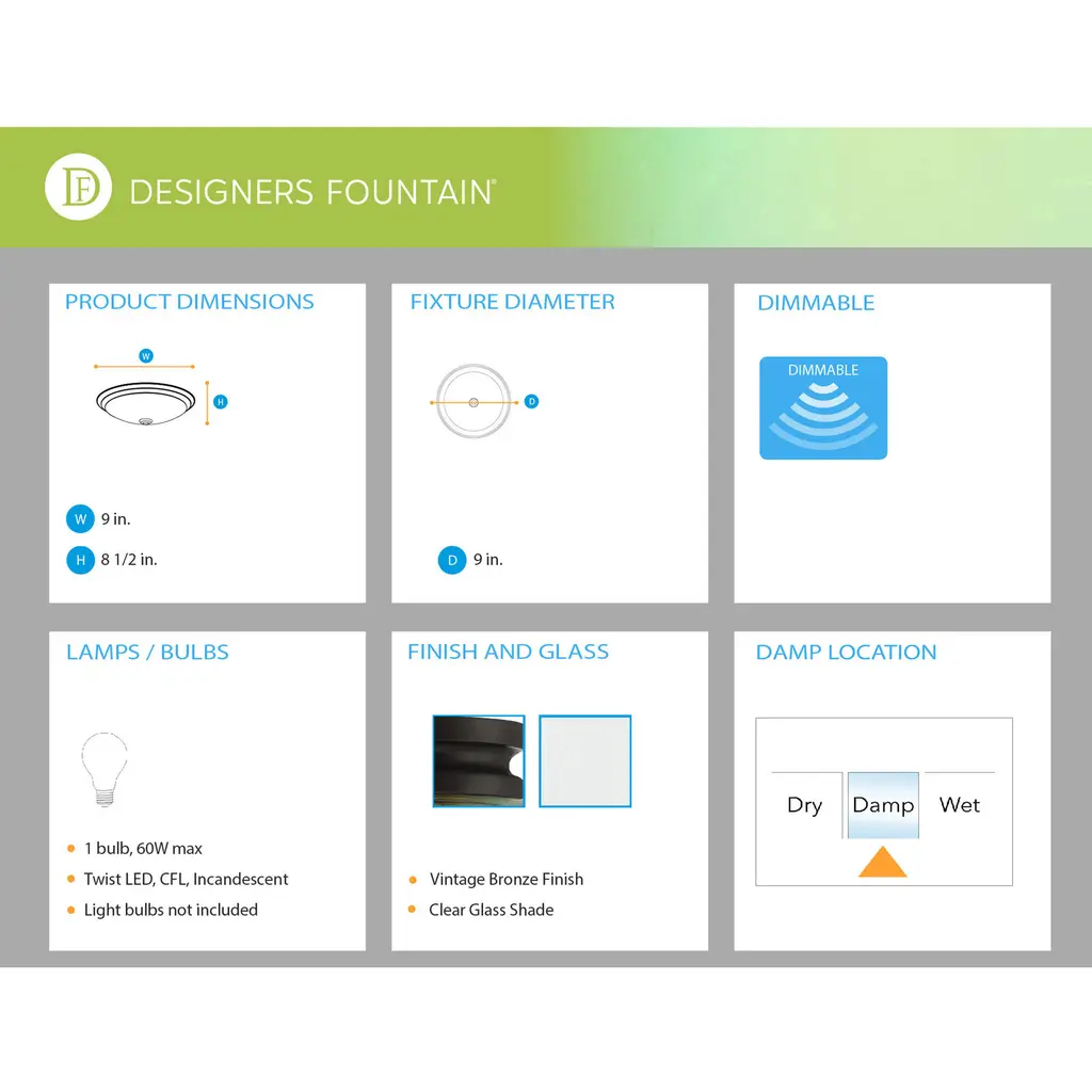 Ezra 1 Light 9 Inch Vintage Bronze Flushmount Ceiling Light