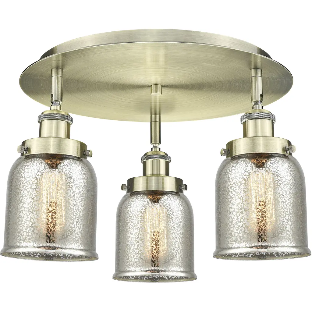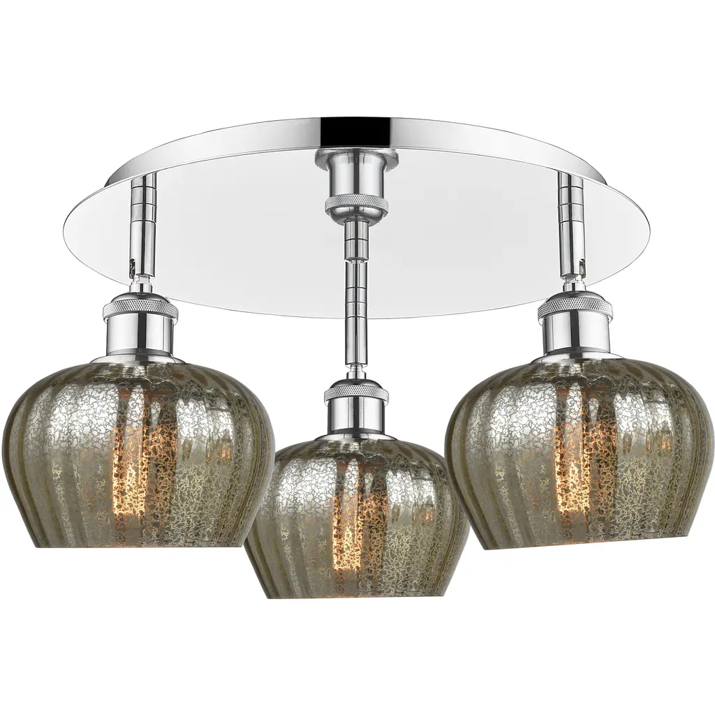 Fenton - 3 Light 18" Flush Mount - Satin Nickel Finish - Mercury Glass Shade