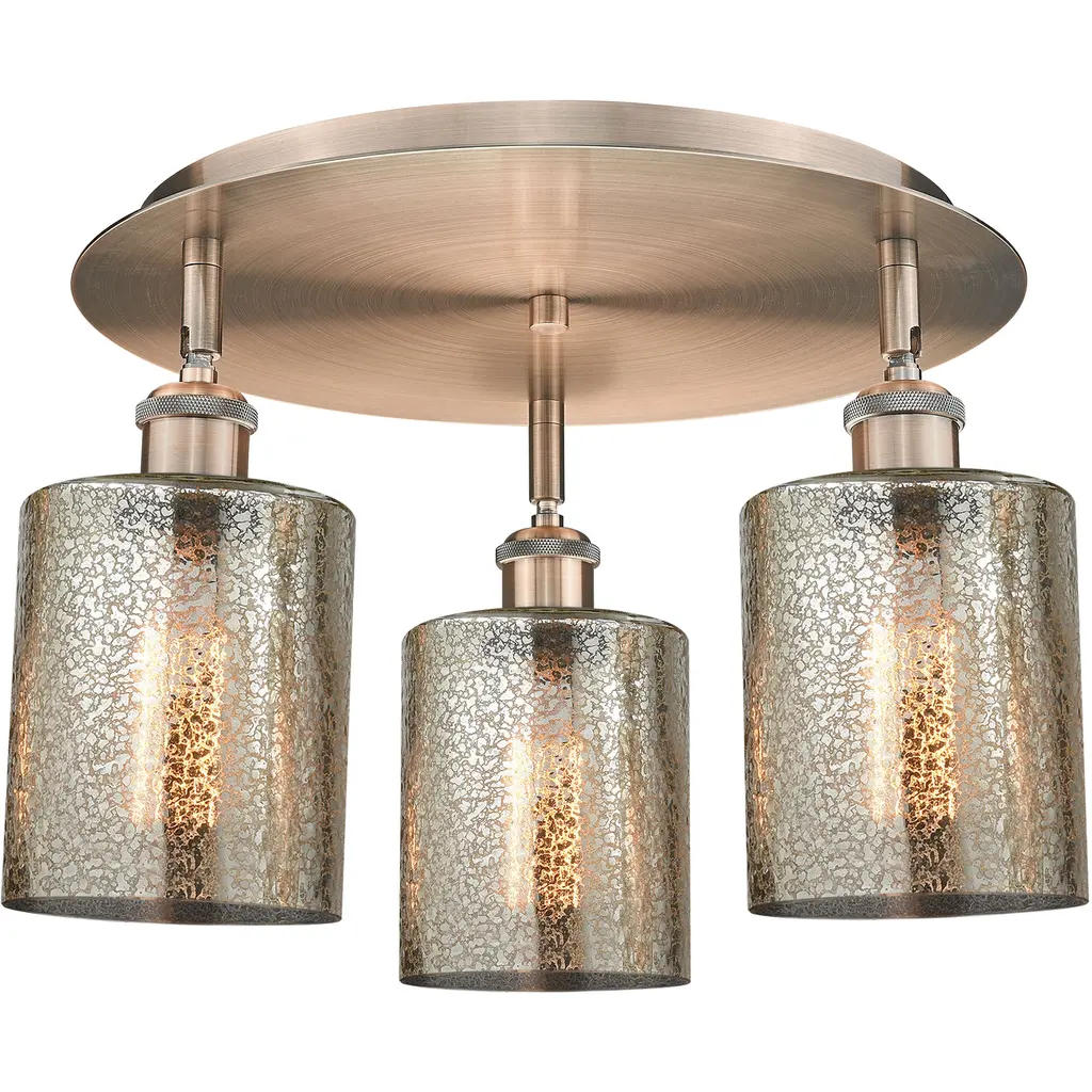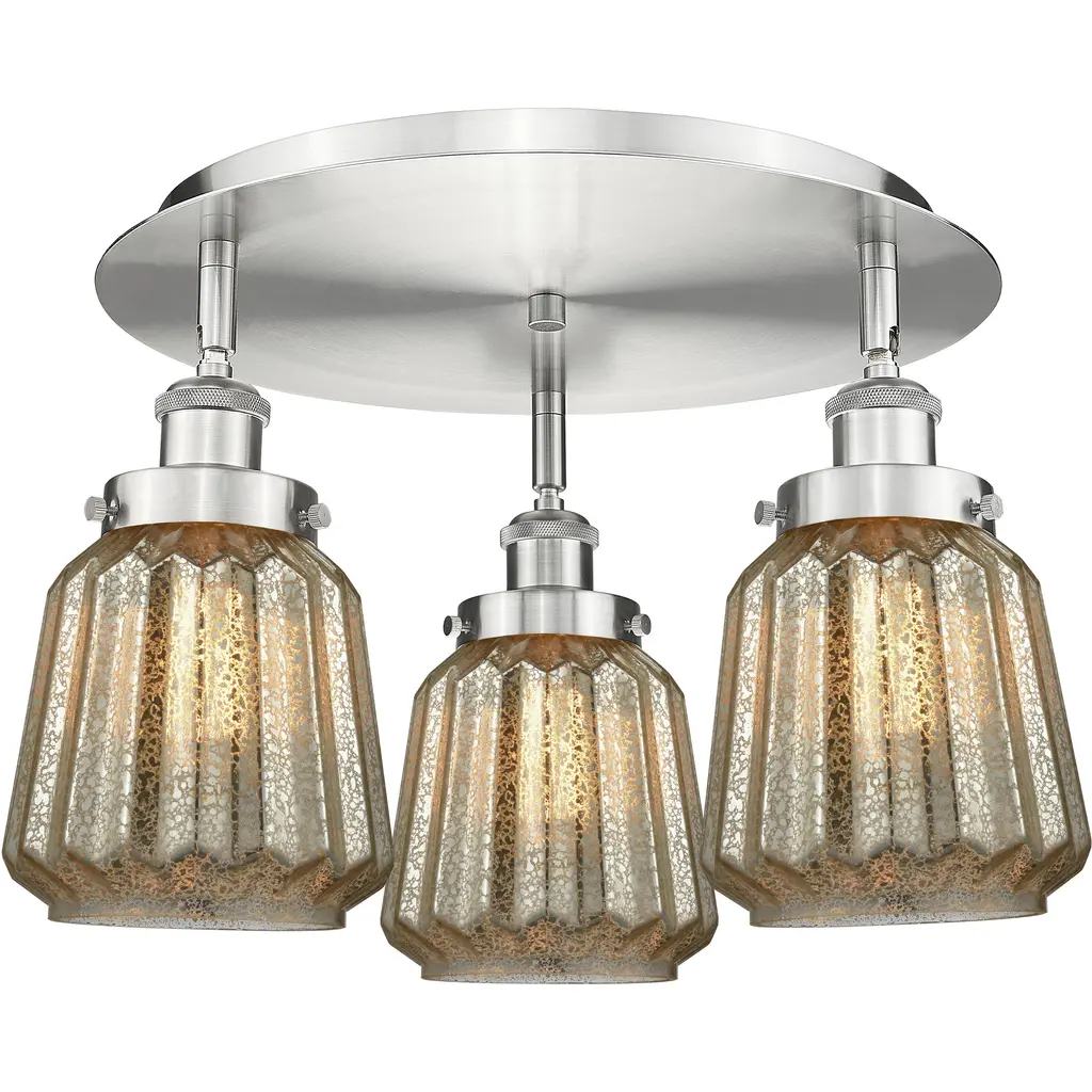 Fenton 3 Light 18.25 Inch Satin Nickel Flush Mount Ceiling Light In Mercury