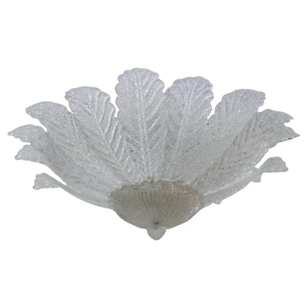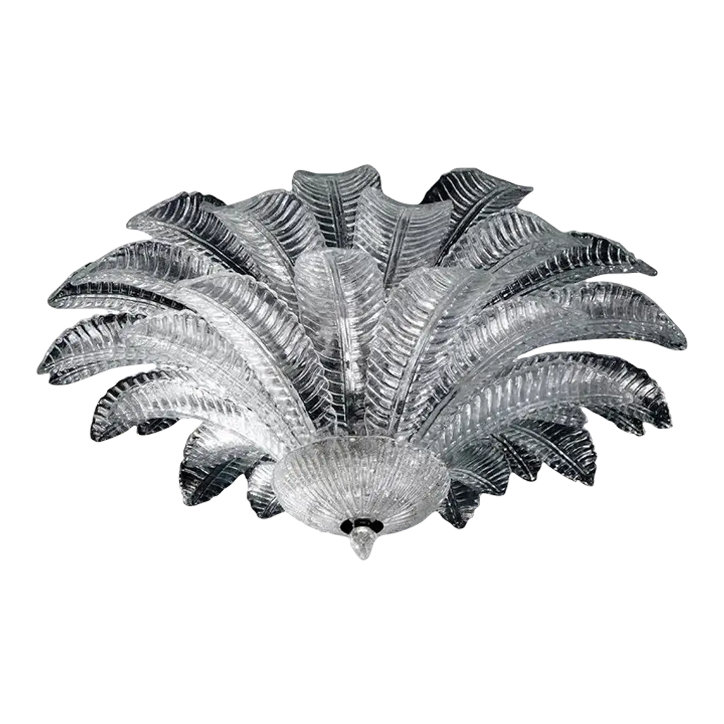 Italian flush mount with clear hand blown Murano Felci fern glass leaves mounted on chrome finish metal frame by Fabio Ltd / Made in Italy9 lights / E26 or E27 type / max 60W eachMeasures: Diameter 39.5 inches, height 18 inchesOrder only / this item ships from ItalyOrder reference #: FABIOLTD C912