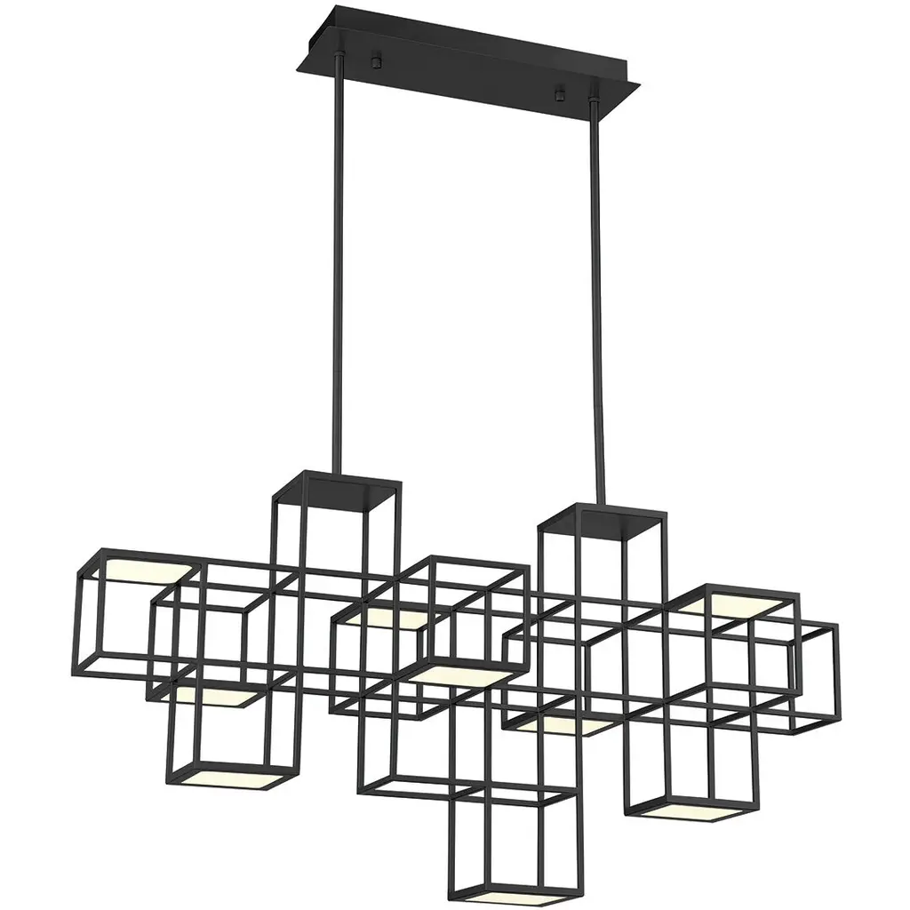 Inspired by shadow box wall art, multiple cubes are positioned in dimensional patterns and illuminated by LED panels to create a dramatic visual effect. The strategically placed direct and indirect light sources illuminate up and down for even more visual interest. The Ferro collection can bring its modern design to a variety of rooms with available chandelier, pendant, flushmount and wall sconce options.