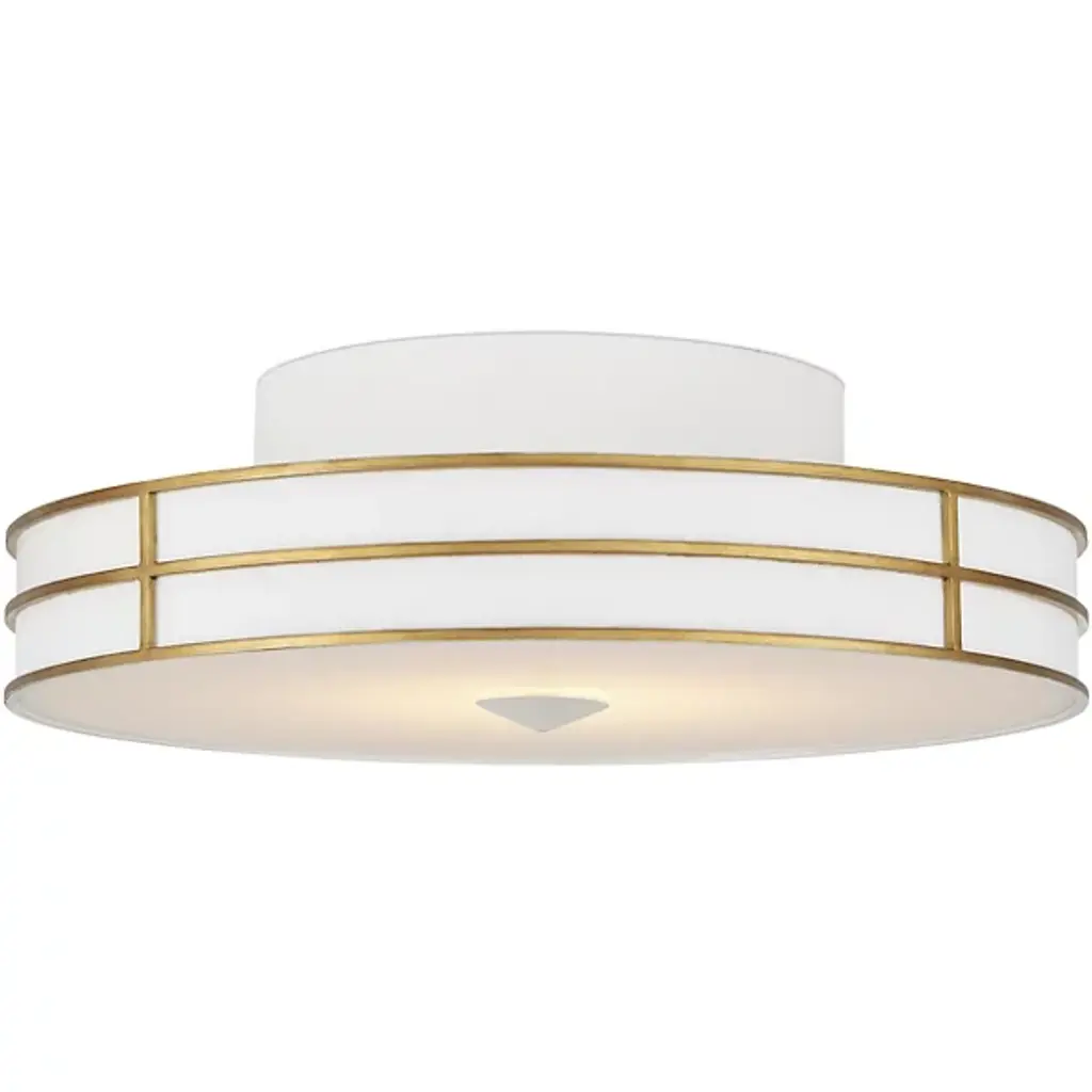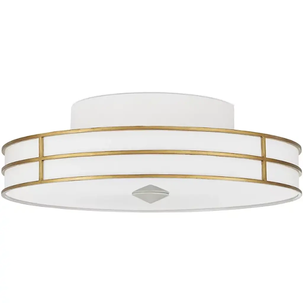 The Fielding LED Flushmount from Currey & Company, designed by Tom Caldwell, embraces a thoroughly modern aesthetic with a subtle touch of Hollywood glamour. Crafted from wrought iron, its sophisticated profile is adorned with a blend of Gesso White and Contemporary Gold finishes. Inspired by the cutting-edge capabilities of integrated LED technology, adding a Sugar White rim where the metal meets the acrylic diffuser enhances the fixture's overall allure, making it a chic and technologically advanced addition to your space.