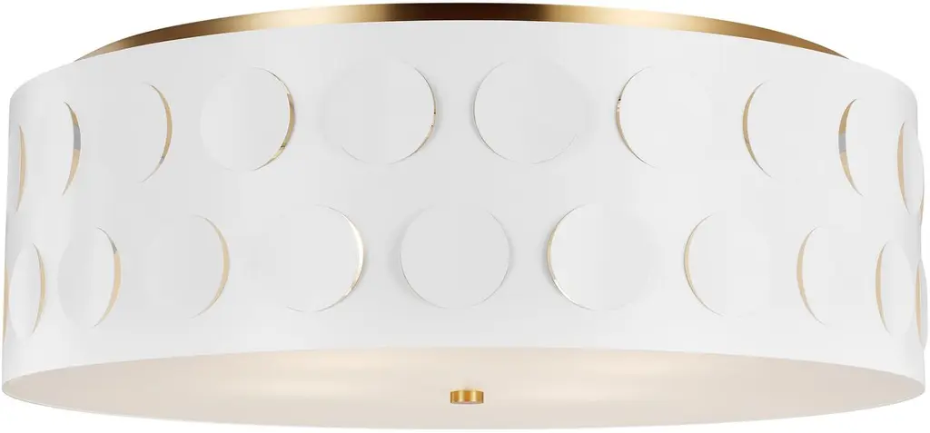 15 in.; Filigree LED Decor Flush Mount Fixture; Polished Nickel Finish; White Fabric Shade