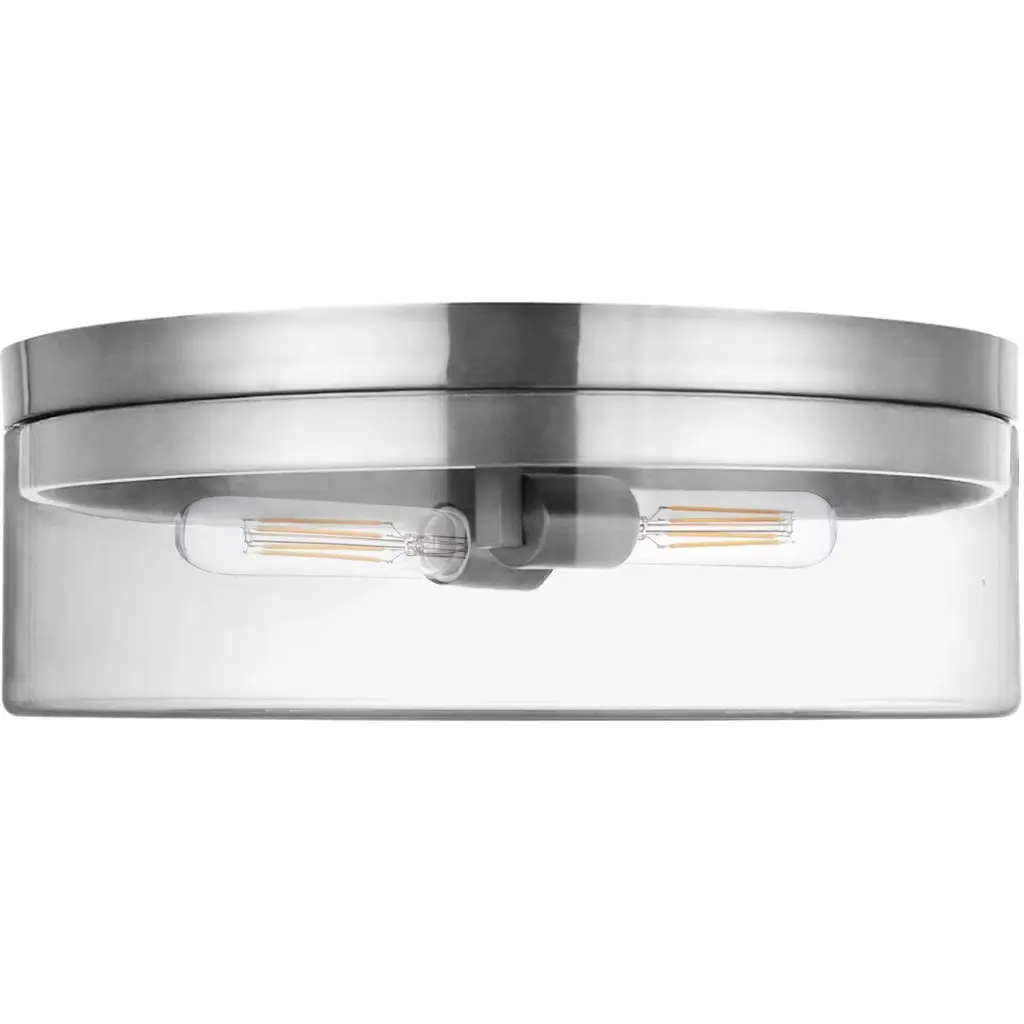 Illuminate your home with the Fiona Flush Mount. This contemporary design, made with high-quality metal and glass materials, can be used with a replaceable LED light bulb. Its globe shape will fit seamlessly on your foyer or bedroom ceiling, providing a stunning light diffusion. With its brass and clear glass design, this lighting piece makes a bold statement in simplicity and style, perfect for elevating any room.