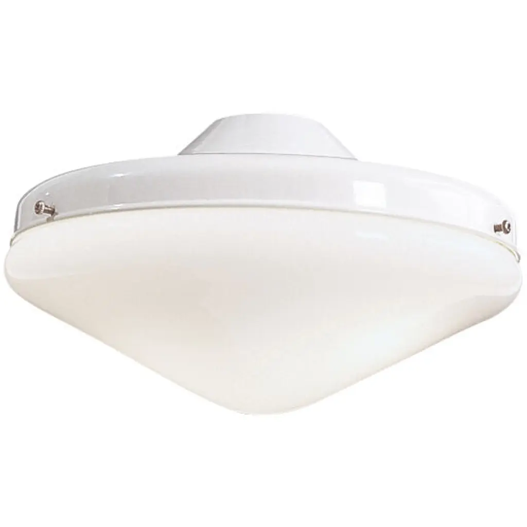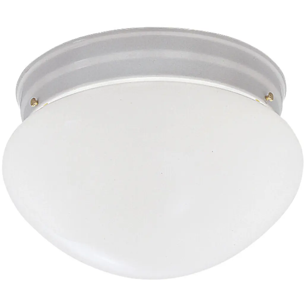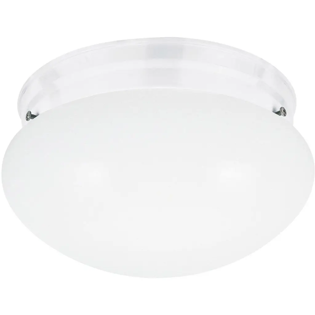 One-light LED Flush Mount with a white glass diffuser and replaceable LED Module in a White finish.