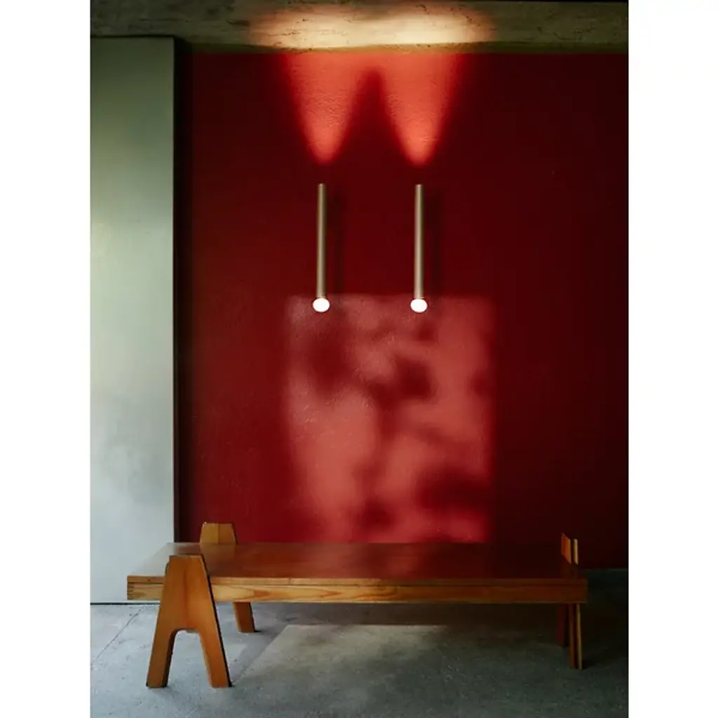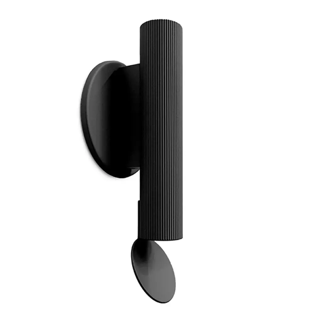 The Flauta LED Wall / Flushmount by FLOS enriches its surroundings with a stylish, upbeat tempo. Designed by Patricia Urquiola to pay homage to the shape of woodwinds and organs, it extends from a sleek circular wall plate along a single vertical fin, seating two spotlights inside a cylindrical housing with an integral LED driver. The lamping is robust and ADA-compliant, shinning out indirectly above and bouncing off an angular reflector set below the fixture.