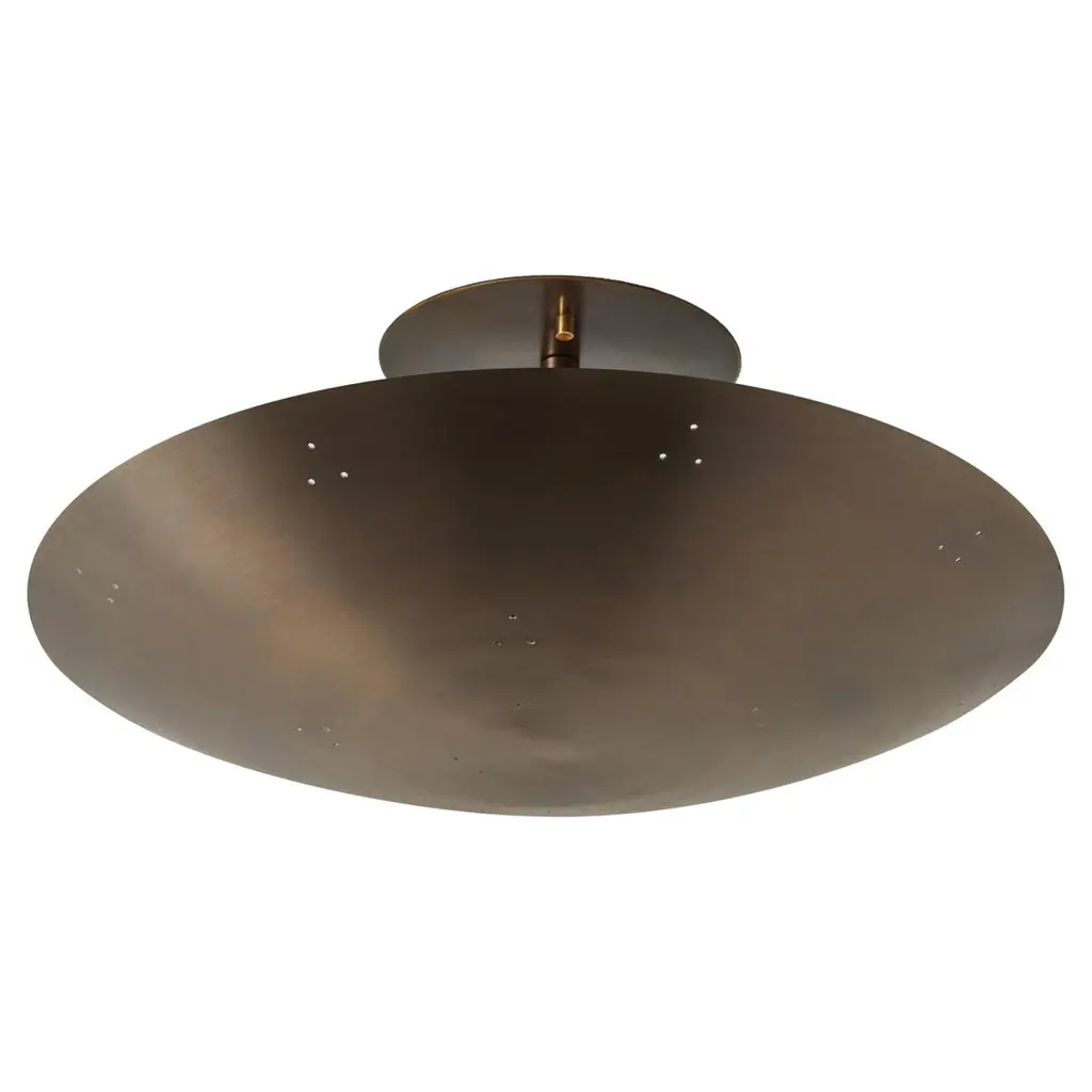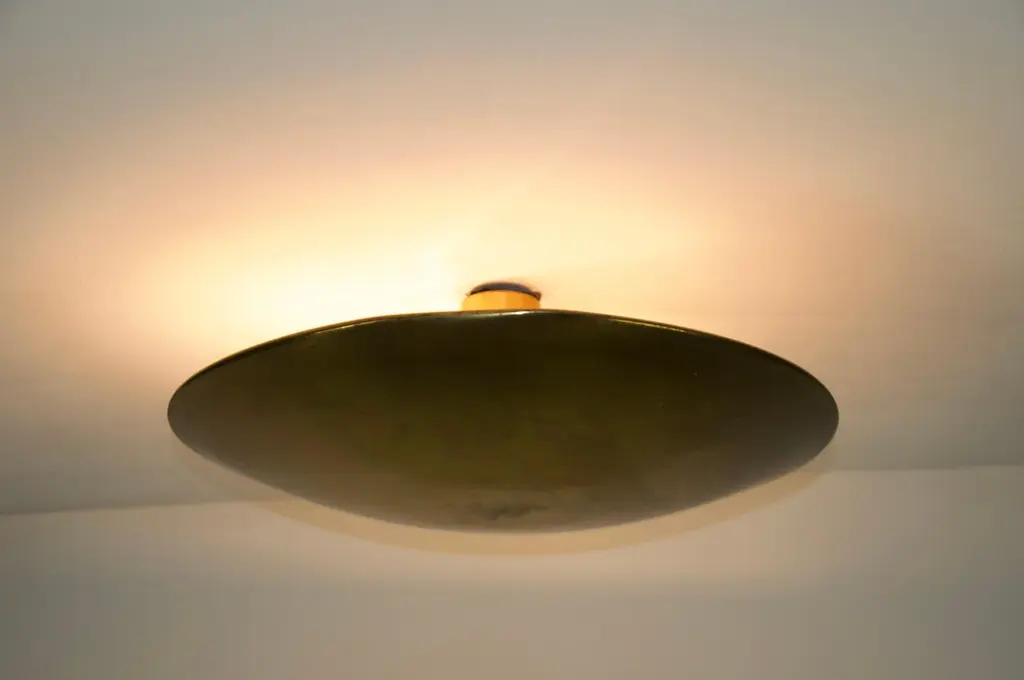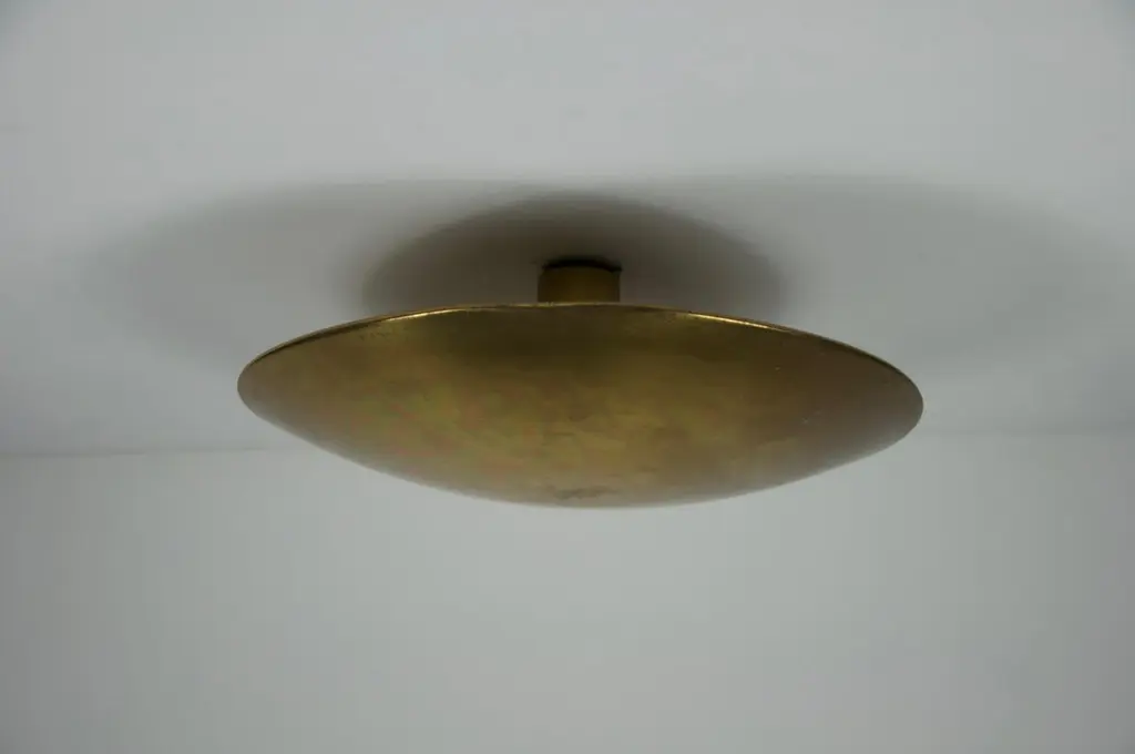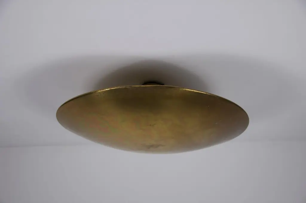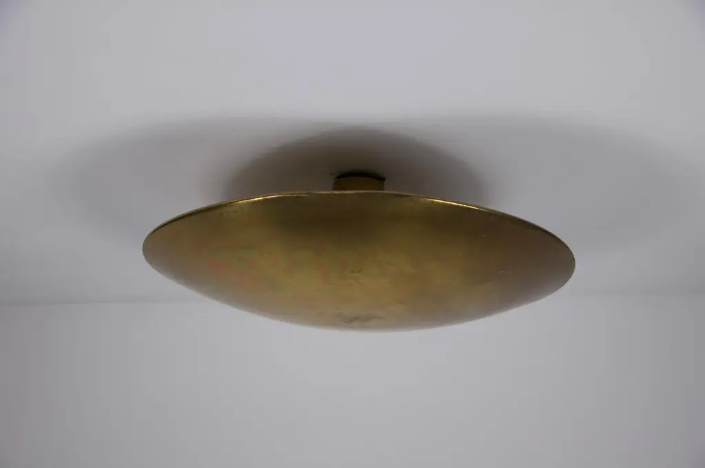 This striking ceiling lamp is a vintage Florian Schulz Midcentury Chrome Flush Mount from the 1960s, showcasing the timeless elegance and craftsmanship of German design. The lamp features a sleek, minimalist form with a shallow dome-shaped body crafted from polished brass, which reflects its surroundings and creates a sophisticated, understated ambiance. Its flush-mount design makes it ideal for spaces with lower ceilings while still offering a bold visual statement. Representative of midcentury modern aesthetics, this piece balances form and function beautifully, making it a desirable addition for collectors or interior enthusiasts seeking an authentic touch of 1960s style.The light requires five E27 light bulbs. Good vintage condition. Works with US and EU electrics (110/120/230V).Free worldwide express shipping.