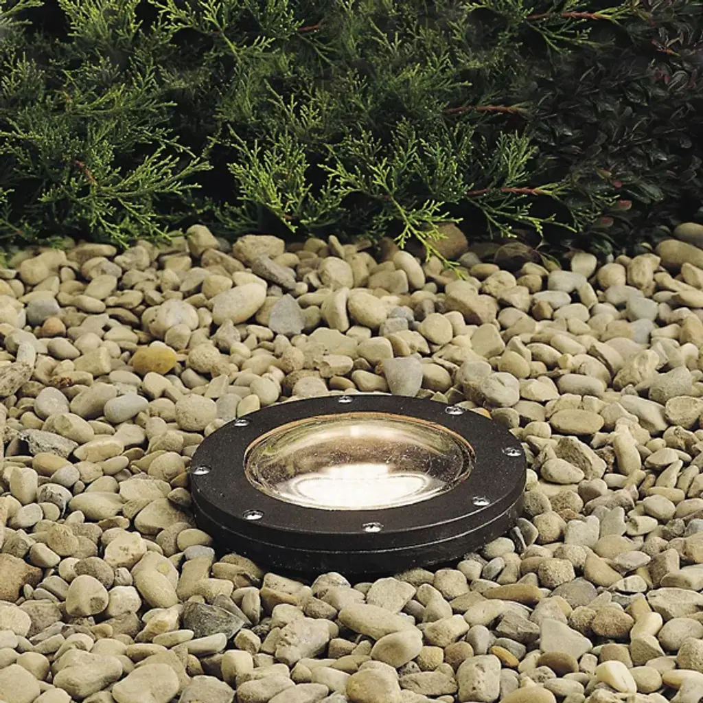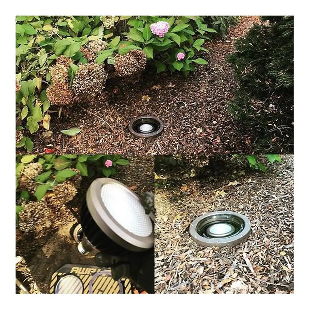 Made from thermoplastic composite resin, the Kichler Flush 50-Watt Par 36 Well Light is an excellent choice for lighting flower beds and other landscaped areas. It is fully sealed and watertight, making it safe for outdoor in-ground use. Its flush installation and durable housing makes it resistant to lawnmowers and impacts.