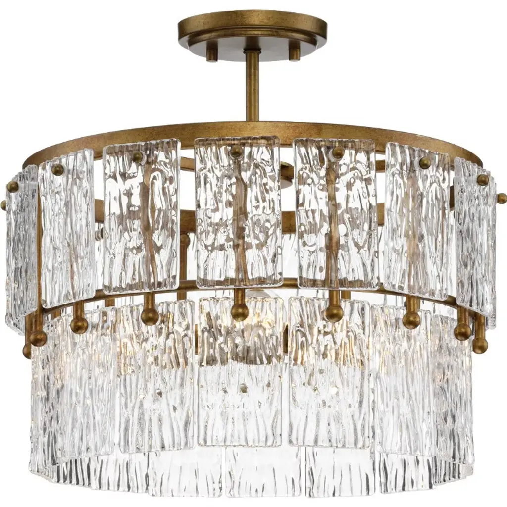 Flush Mount Chandelier By Boris Tabachoff With Hand Blow Glass Prisms, 1970