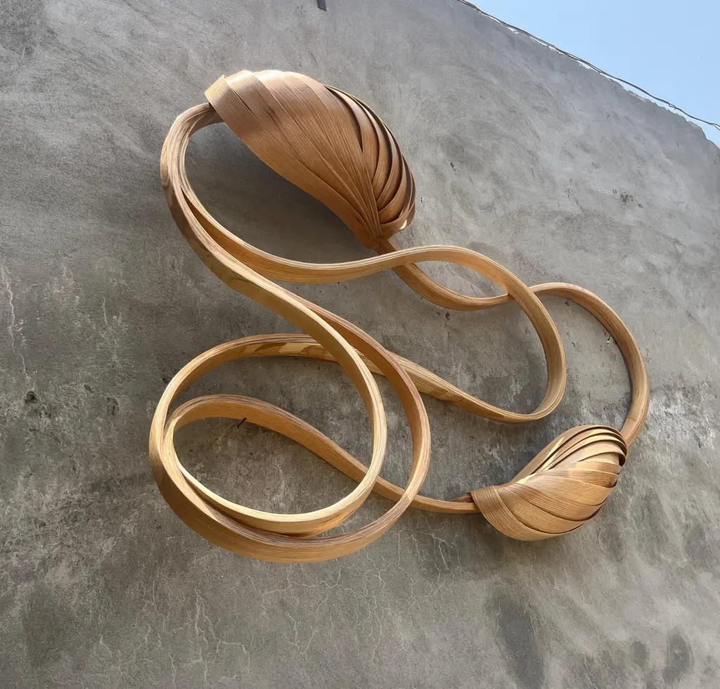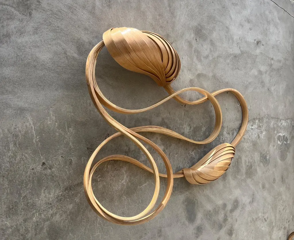 The Flush Mount Light 4 sits closely on the ceiling, it has been made using solid ash wood by bending the wood. Two wooden pods bear the light bulbs, dispelling light from in between. This variation of the light has been given more depth by extending the design flows to come lower from the ceiling. The Vrksa Series is based on bending solid wood to create the pieces, this has allowed us to design handmade furniture in a unique aesthetic in which the natural flow of the wood takes the reins of design. No two pieces are exactly the same because of the technique used; making each piece unique.Other points worth knowing:- The design may vary slightly from the piece in the pictures since each piece is handmade.- You can choose from an array of finishes.- The dimensions of the piece are customizable.