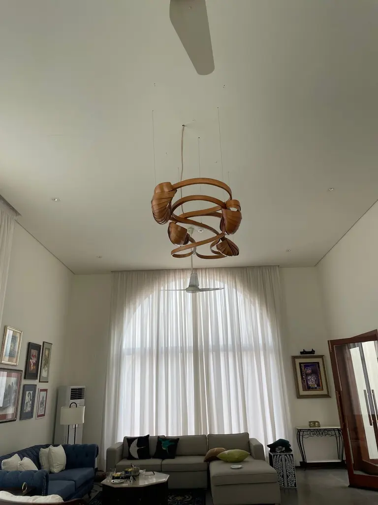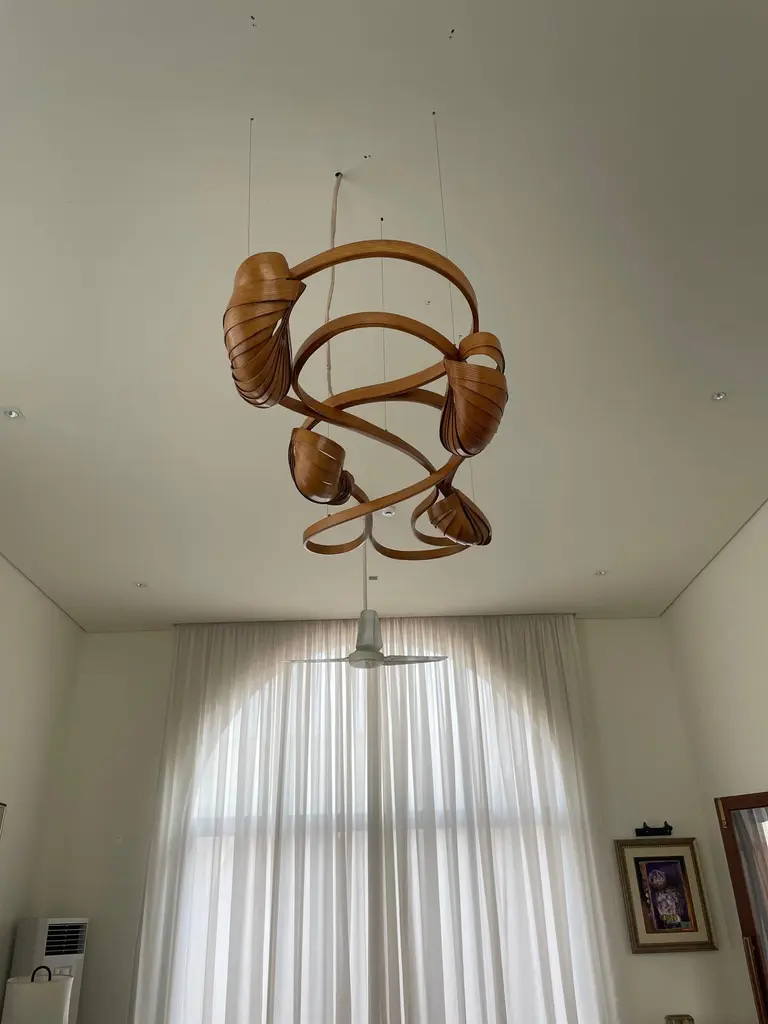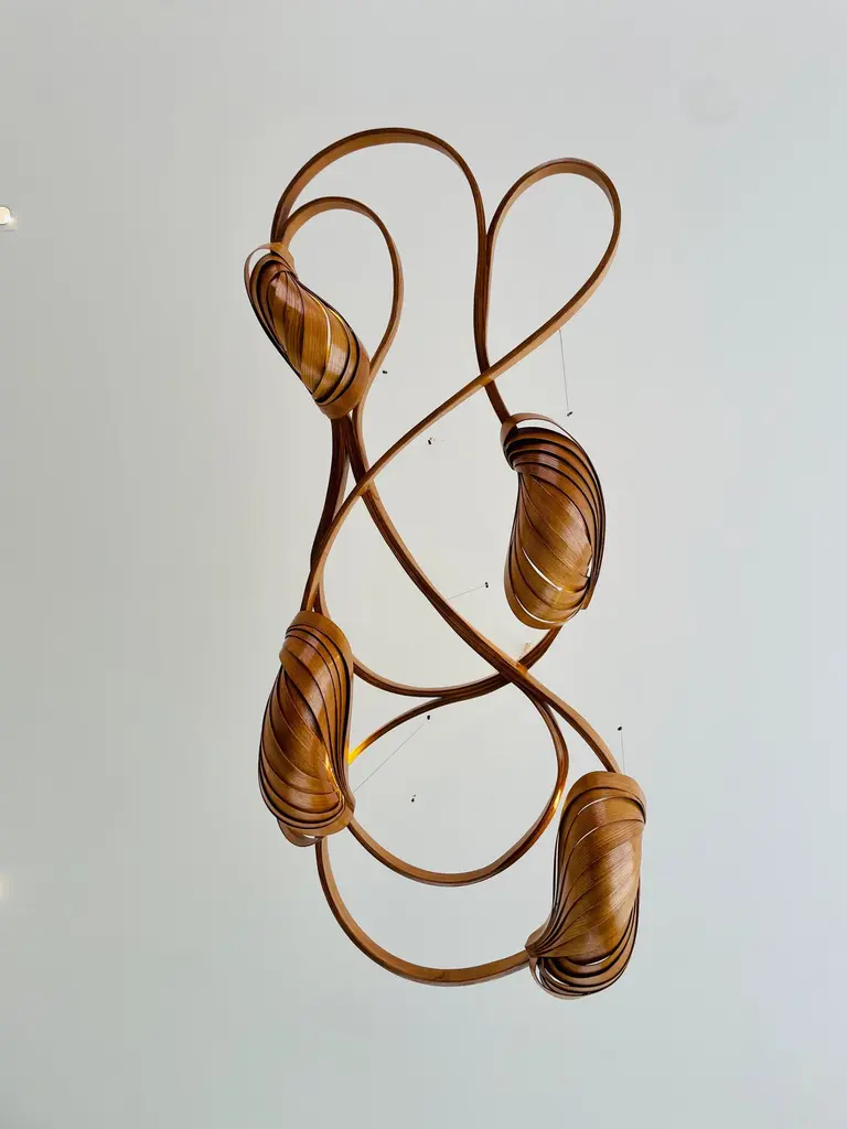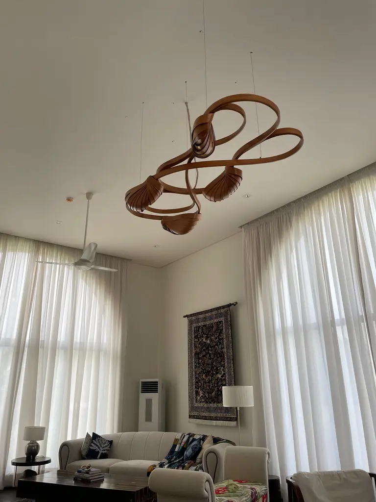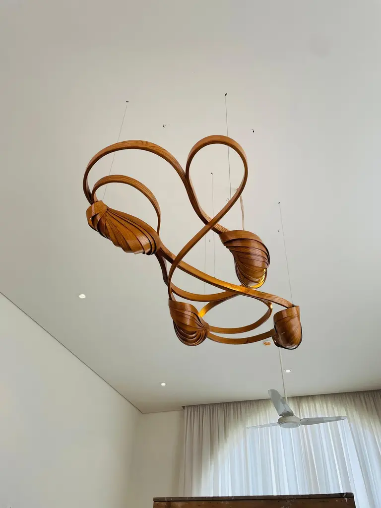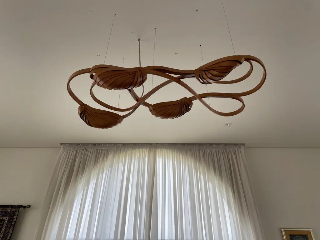 This variation of the Flush Mount Light No. 2 has an extra lighting pod installed; making a total of four lighting pods.It sits closely on the ceiling, it has been made using solid ash wood by bending the wood. Two cocoon-like wooden structures bear the light bulbs, dispelling light from between the wooden structures.The Vrksa Series is based on bending solid wood to create the pieces, this has allowed us to design handmade furniture in a unique aesthetic in which the natural flow of the wood takes the reins of design. No two pieces are exactly the same because of the technique used; making each piece unique.Other points worth knowing:- The design may vary slightly from the piece in the pictures since each piece is handmade.- You can choose from an array of finishes.- The dimensions of the piece are customizable.