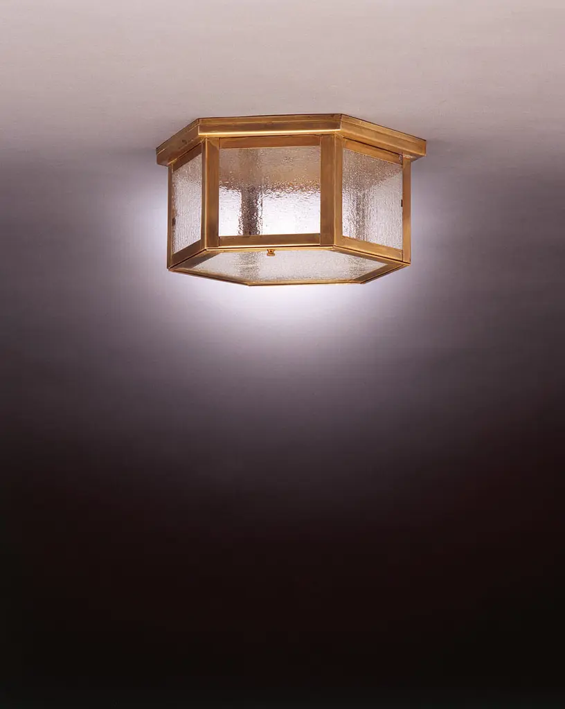 This 2-light ceiling mount fixture from our Flushmount collection is made of durable cast aluminum. It will not rust and resists corrosion. The frosted glass reduces glare.