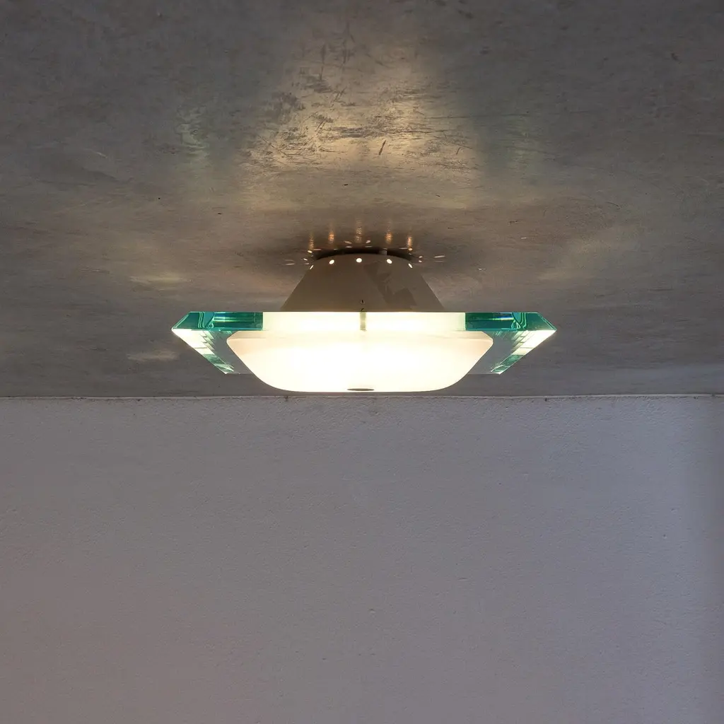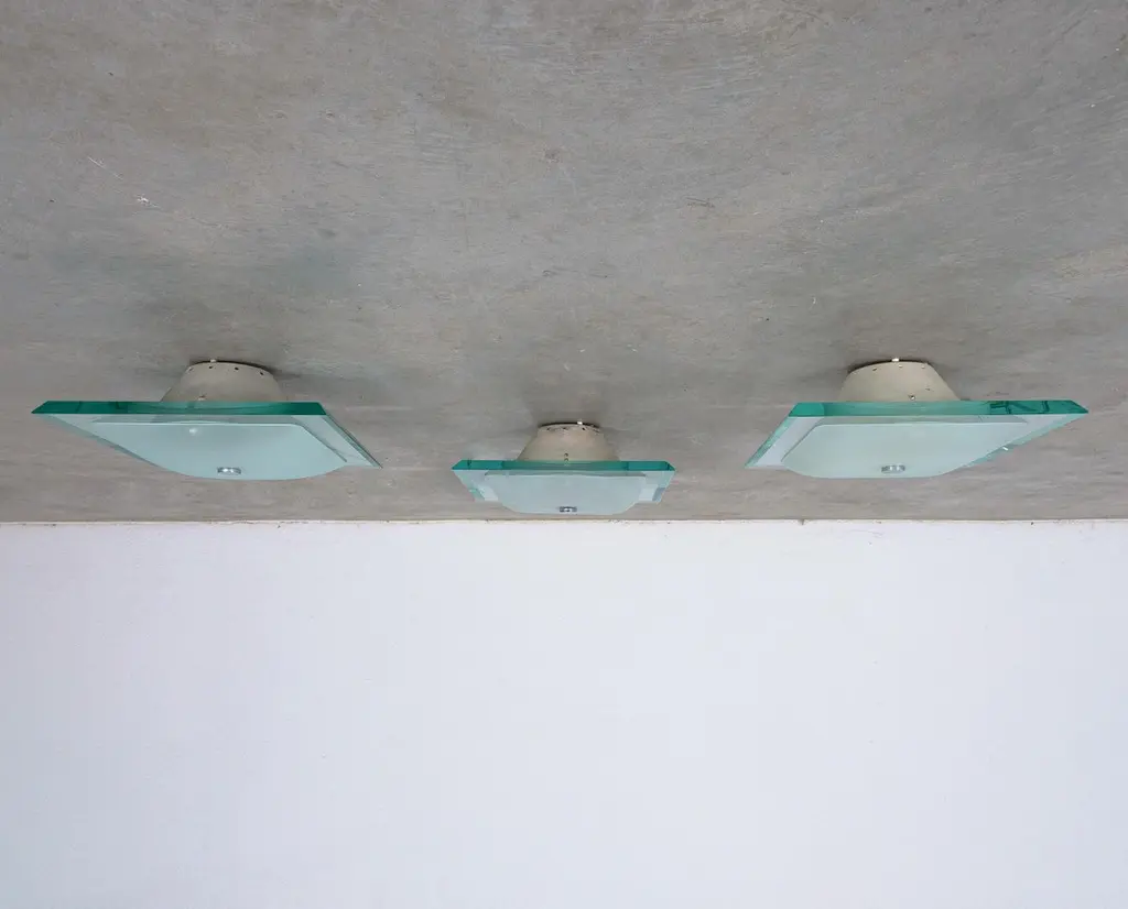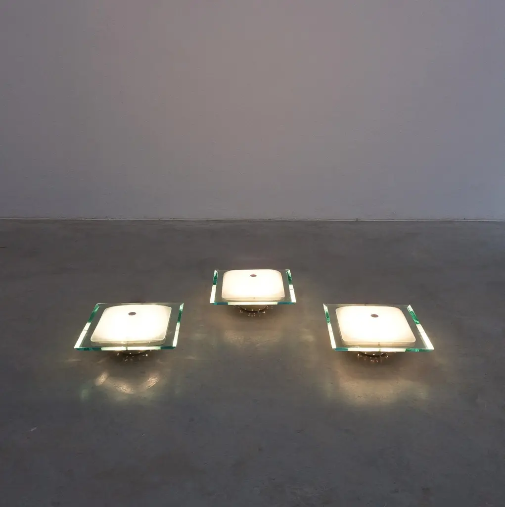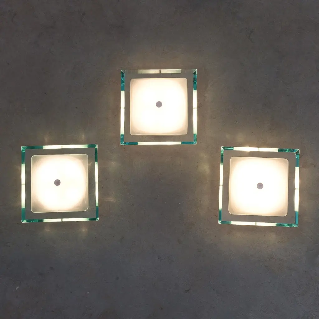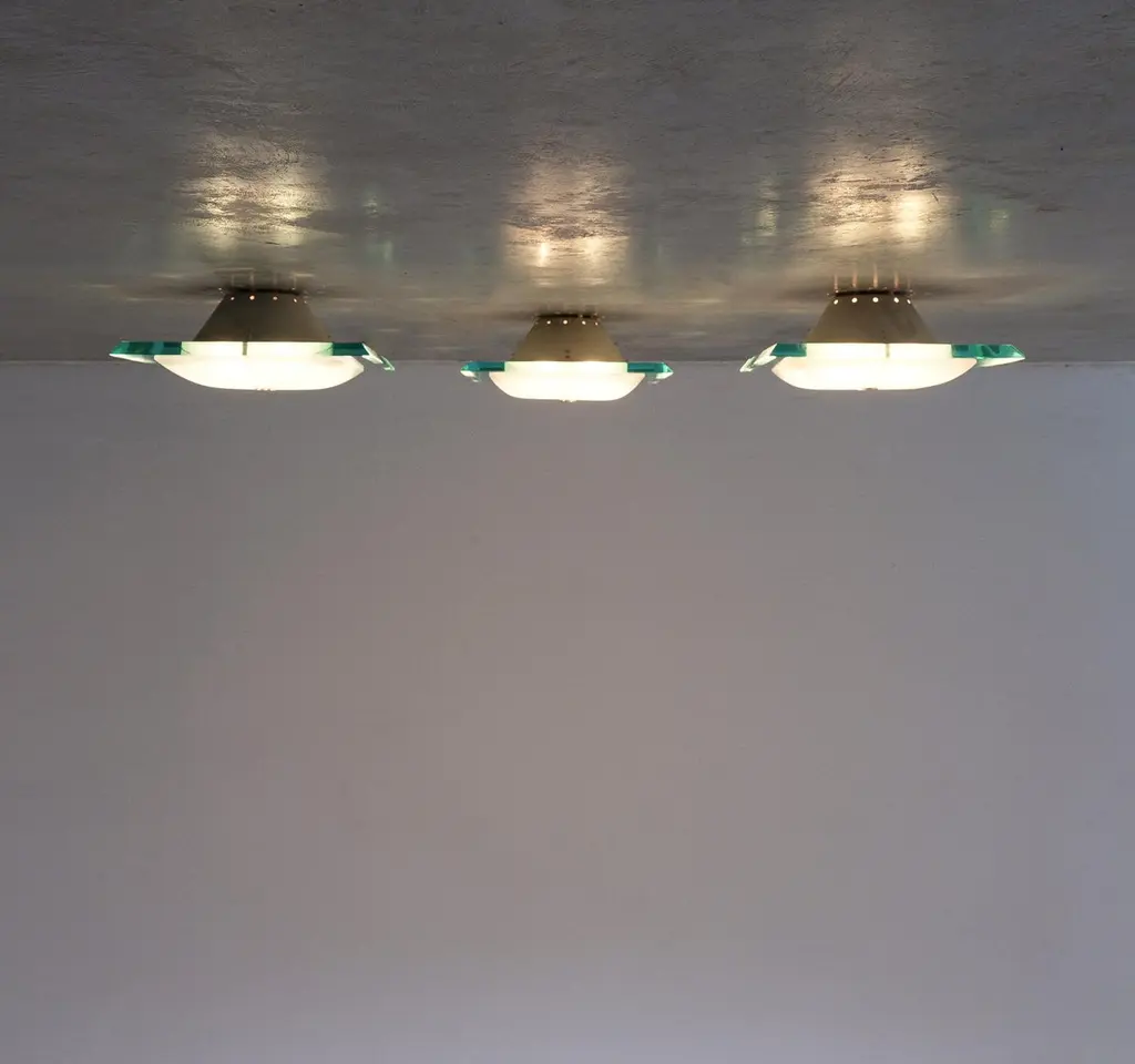 Fontana Arte Max Ingrand Flush Mounts 1 Of 3 From Glass Model 1990, Mid Century