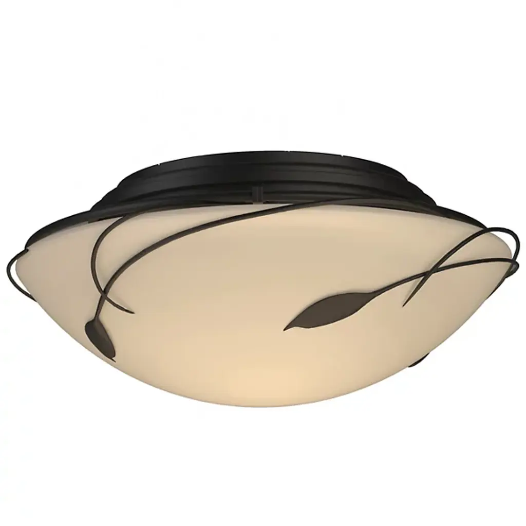 Our ceiling light is an example of "sylvan steel." Tendrils curl around the glass bowl and sprout delicate hand-forged iron leaves to create an eye-catching design. Handcrafted by artisans at our forge here in Vermont, each piece is unique.
