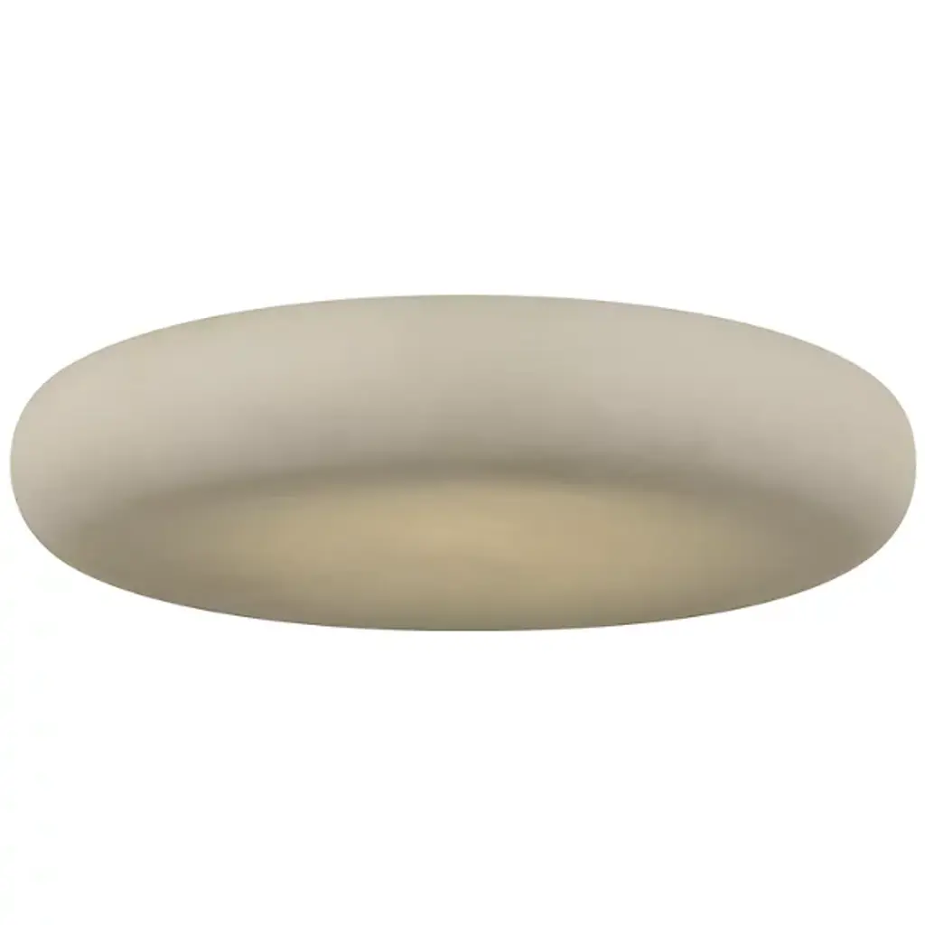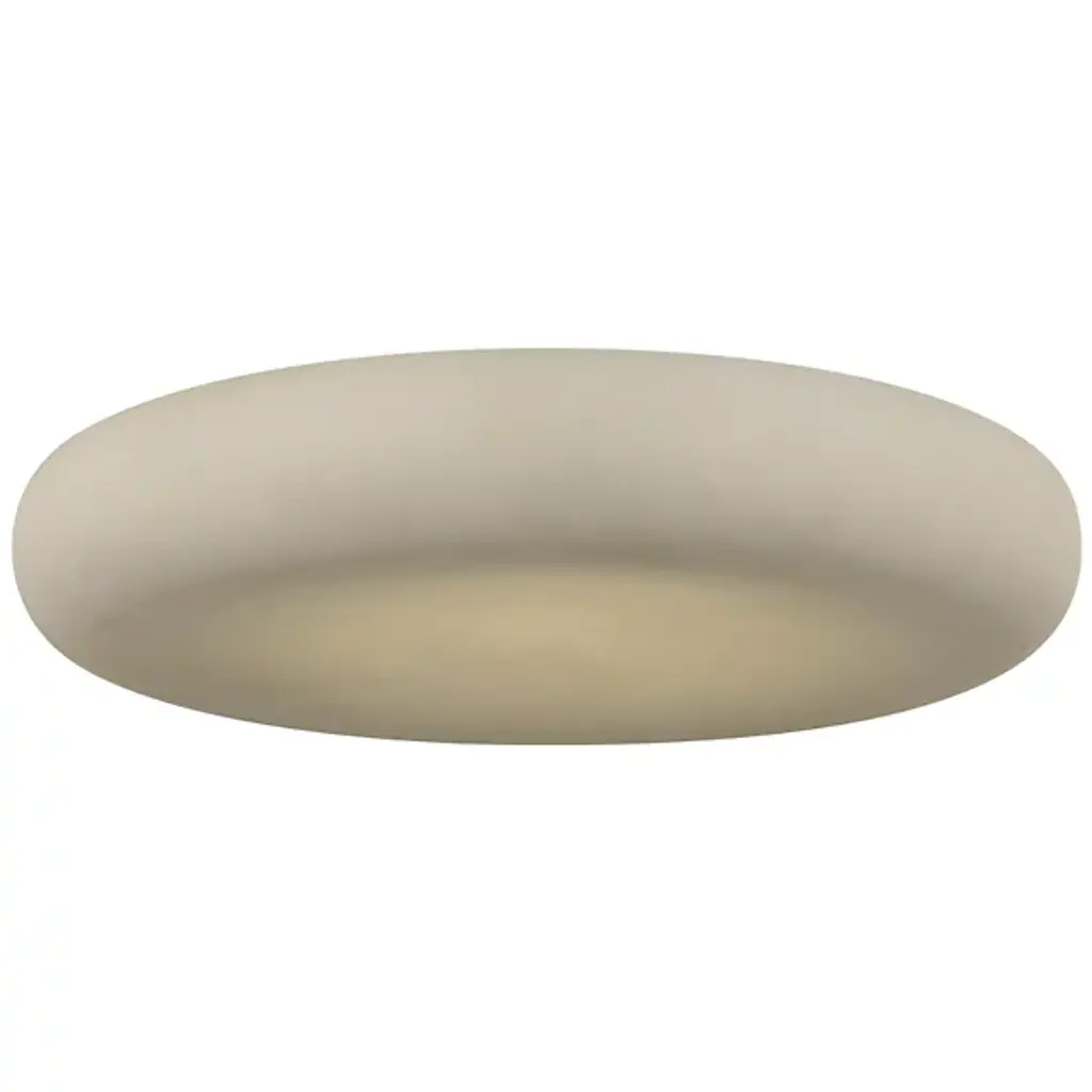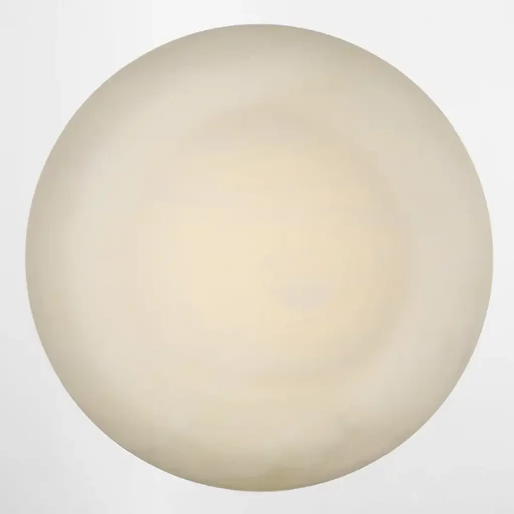 The Formosa LED Flushmount from Visual Comfort Signature sits close to the ceiling while projecting a soft pool of light through the natural alabaster stone. Kelly Wearstler designed this fixture to function in spaces where hanging pendants aren't practical but where quality illumination remains essential. The rounded alabaster form diffuses light evenly across its surface, eliminating shadows and creating consistent room brightness. The brass trim defines the fixture's edge with a thin metallic outline that catches light differently than the stone. This ceiling-hugging design works particularly well in rooms with lower ceiling heights.