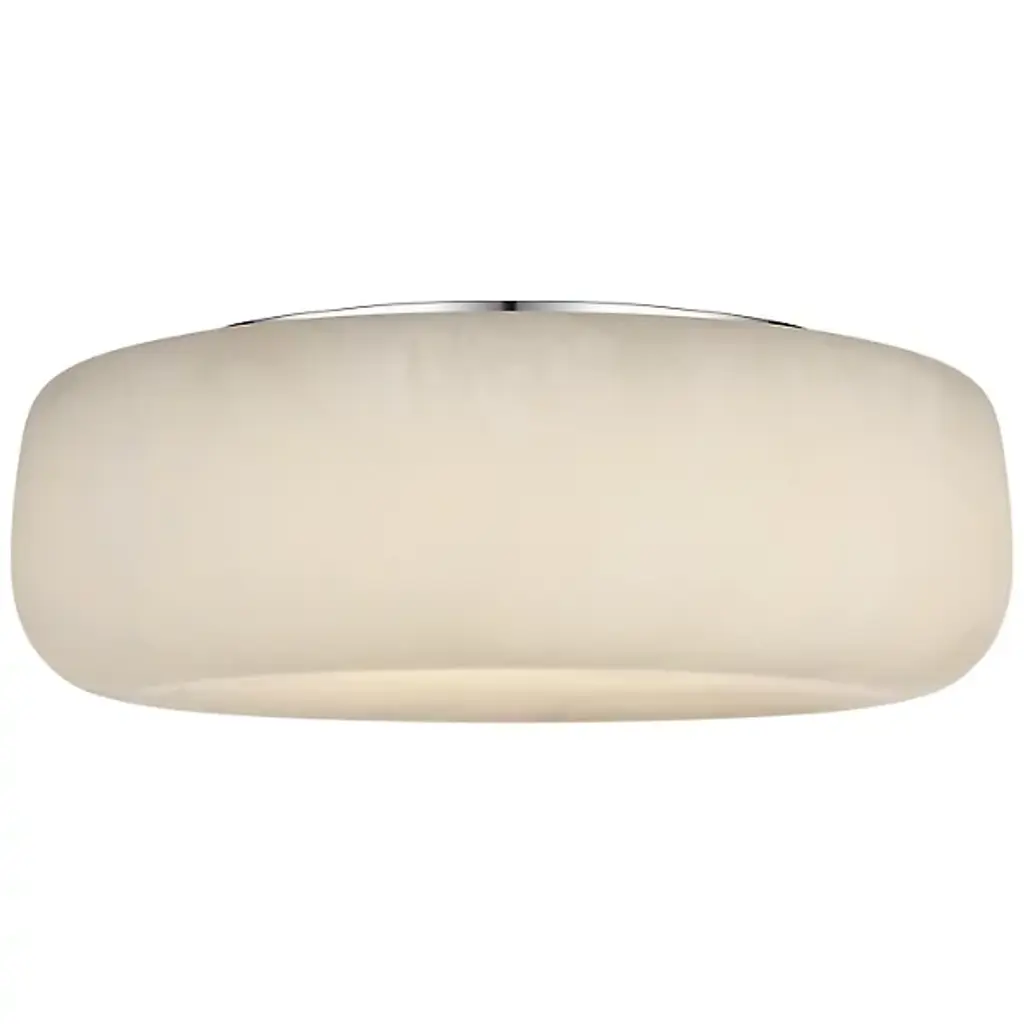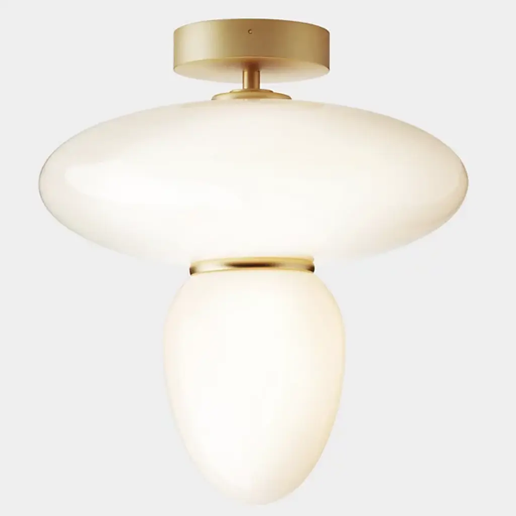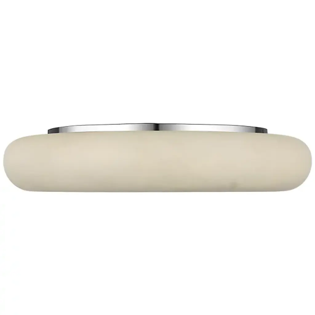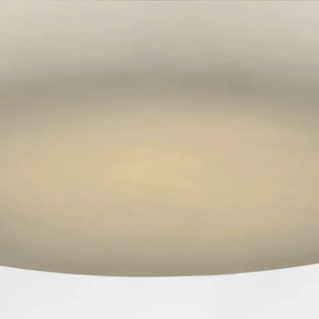 The Formosa LED Flushmount from Visual Comfort Signature sits close to the ceiling while projecting a soft pool of light through the natural alabaster stone. Kelly Wearstler designed this fixture to function in spaces where hanging pendants aren't practical but where quality illumination remains essential. The rounded alabaster form diffuses light evenly across its surface, eliminating shadows and creating consistent room brightness. The brass trim defines the fixture's edge with a thin metallic outline that catches light differently than the stone. This ceiling-hugging design works particularly well in rooms with lower ceiling heights.
