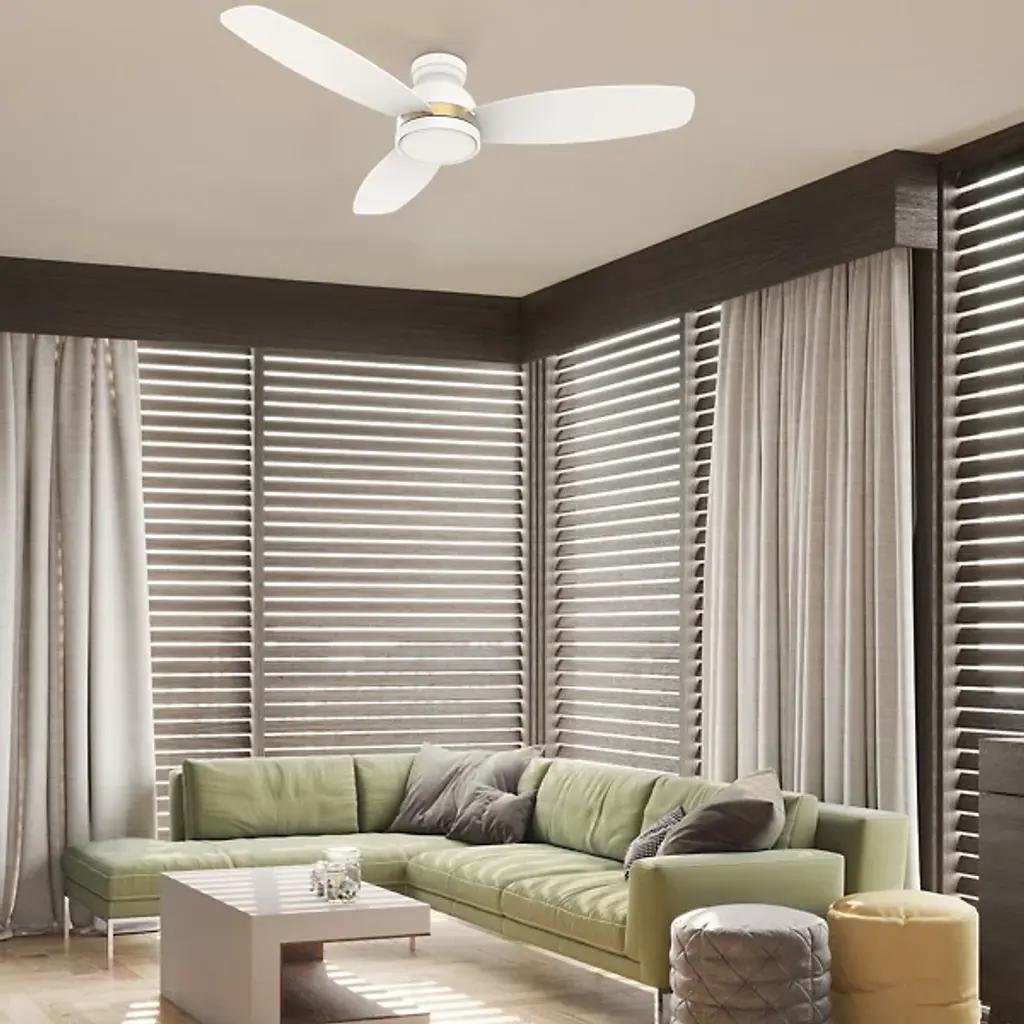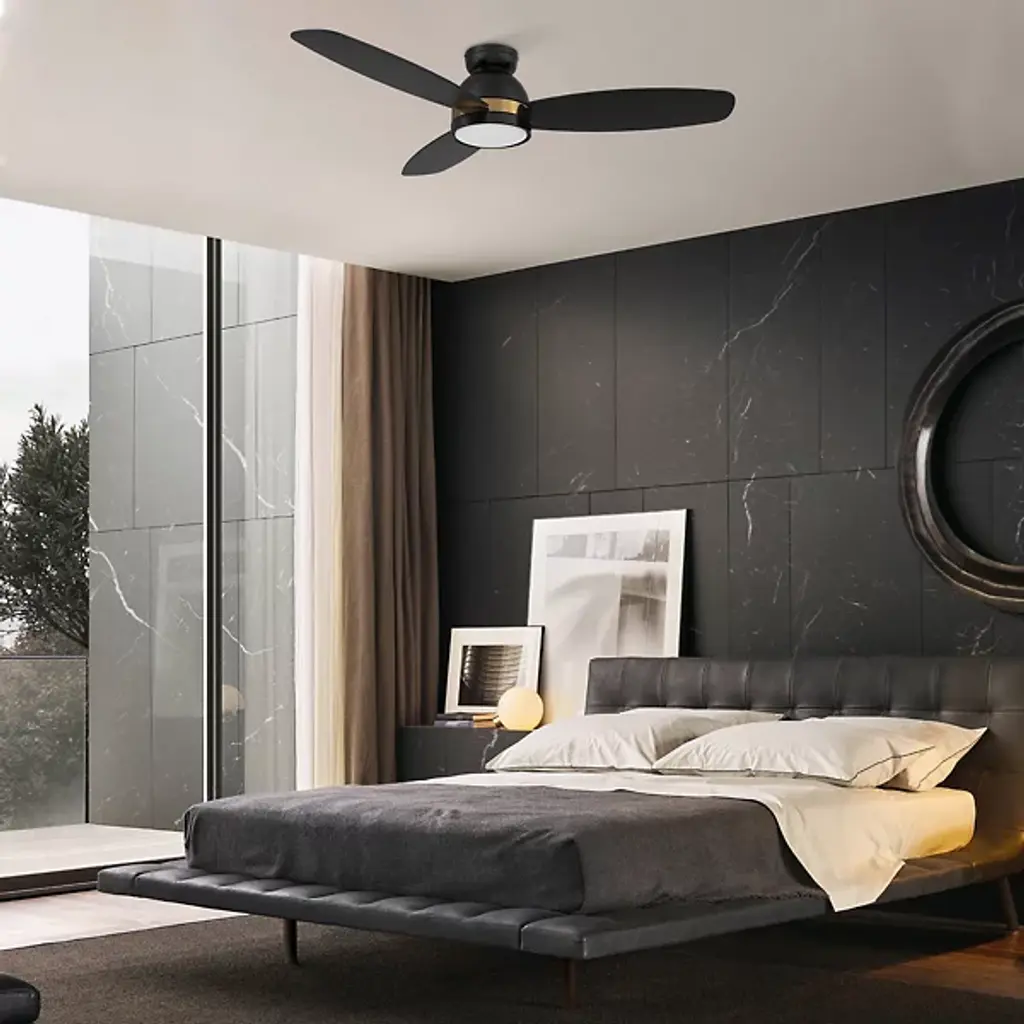 The Fremont LED Flushmount Ceiling Fan is a stylish way to incorporate airflow into a space. Integrated LED illumination with a warm and cool light option results in low energy consumption and a longer life span. It’s compatible with Wi-Fi apps and voice prompts via Google Assistant, Amazon Alexa, and Siri Shortcut. Composed of high-quality plywood, ABS, glass, and a clean finish, it’s a contemporary furnishing presented by Carro USA.