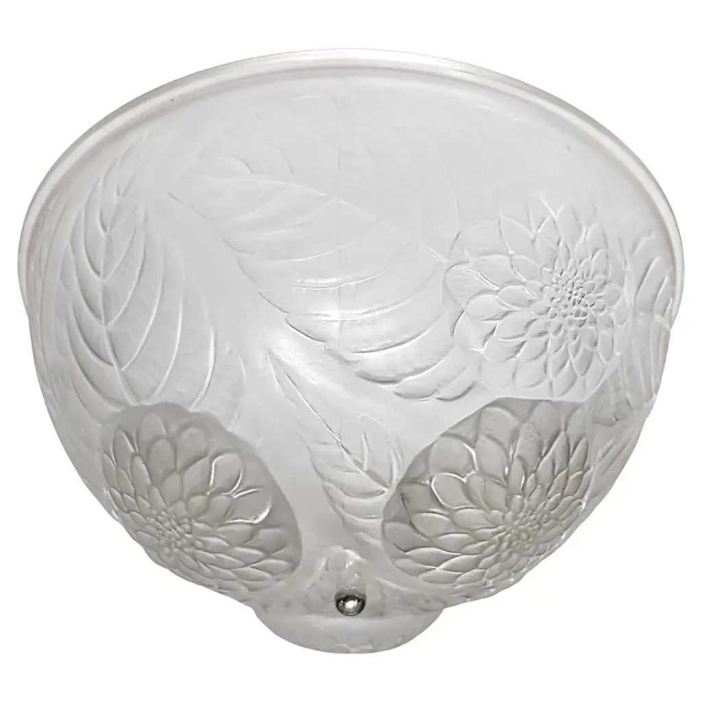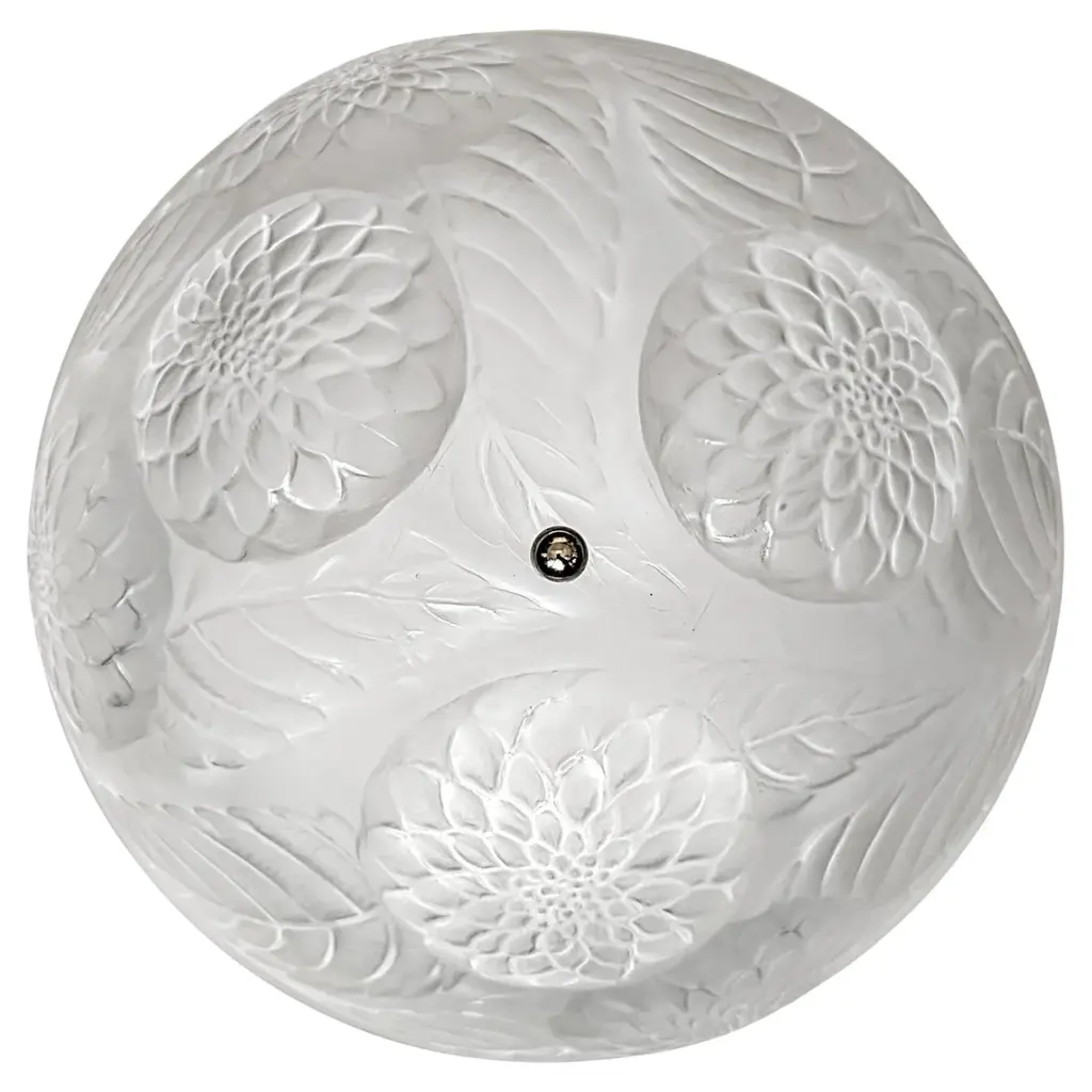French Art Deco Flush Mount Or Chandelier By René Lalique Model Dahlias 2 Avail.
