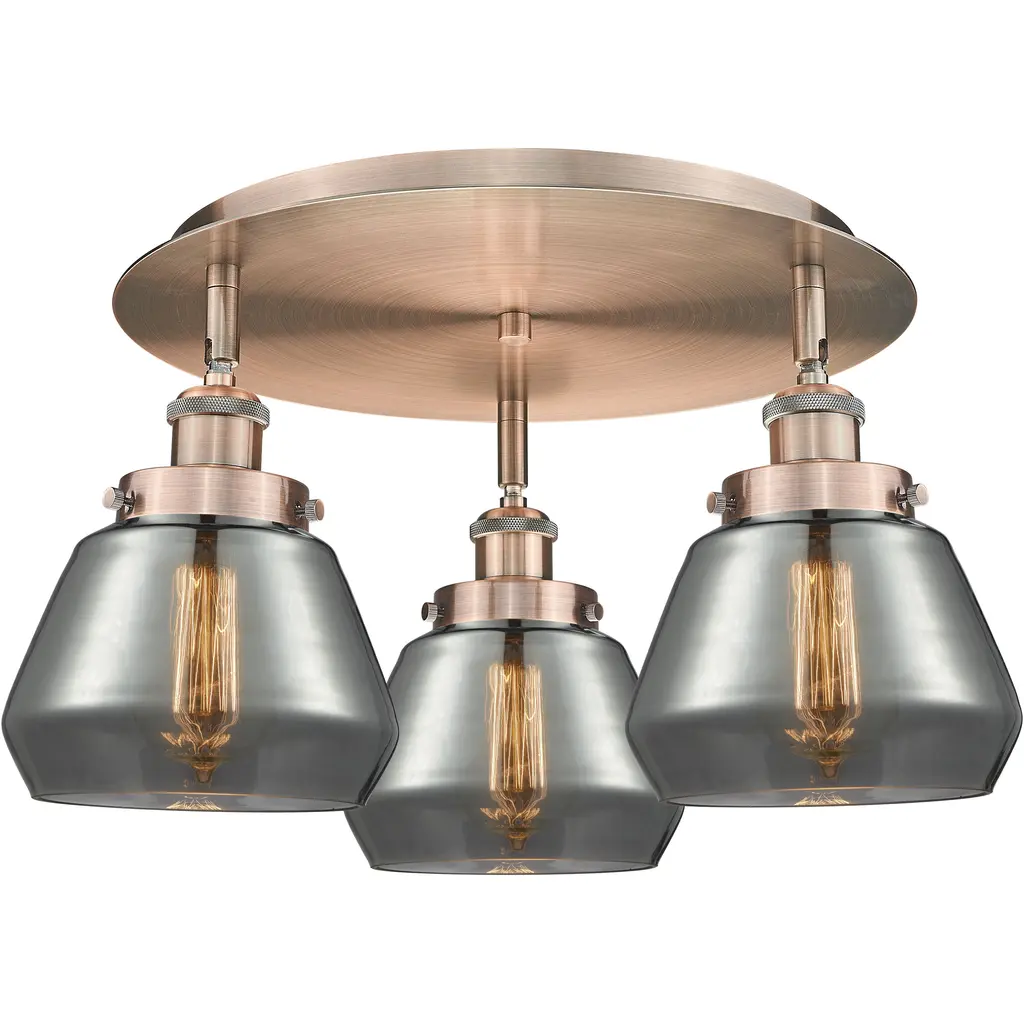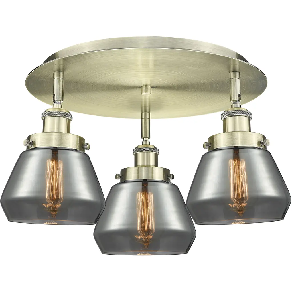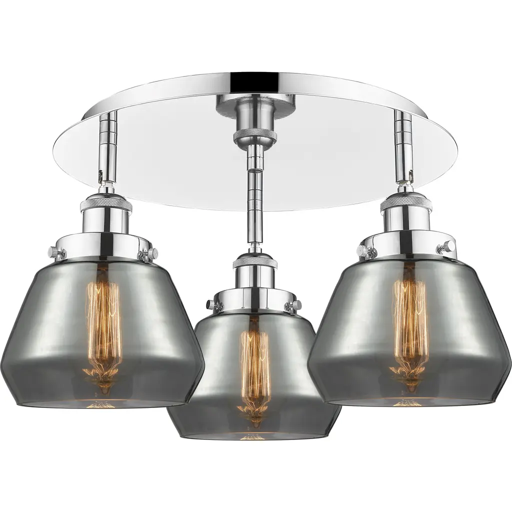 Fulton 3 Light 18.25 Inch Polished Nickel Flush Mount Ceiling Light In Plated Smoke