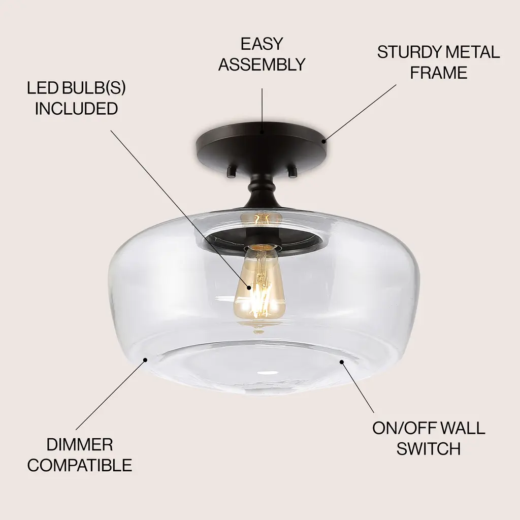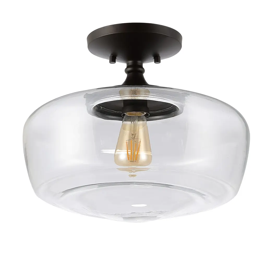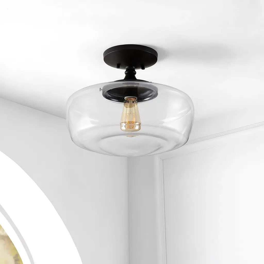 Bring on the farmhouse style with this ceiling light. The schoolhouse-inspired clear glass and Edison-style LED bulb add vintage flair. This ceiling light is a classic for the family room, entry, hallway, kitchen or bedroom. Features:Dimensions:About us:You see a lamp.We see a decorative work of art.A perfectly curved shade casts a dramatic shadow on a floor. Compatible with LED lightbulbs: as easy on the environment as they are on the eyes. The JONATHAN Y Lighting collection considers every detail from impeccably sourced materials to designer styling. And our prices are so attractive, we've transformed a functional necessity into a fashion accessory.JONATHAN Y Lighting - a fashion revolution in home decor.