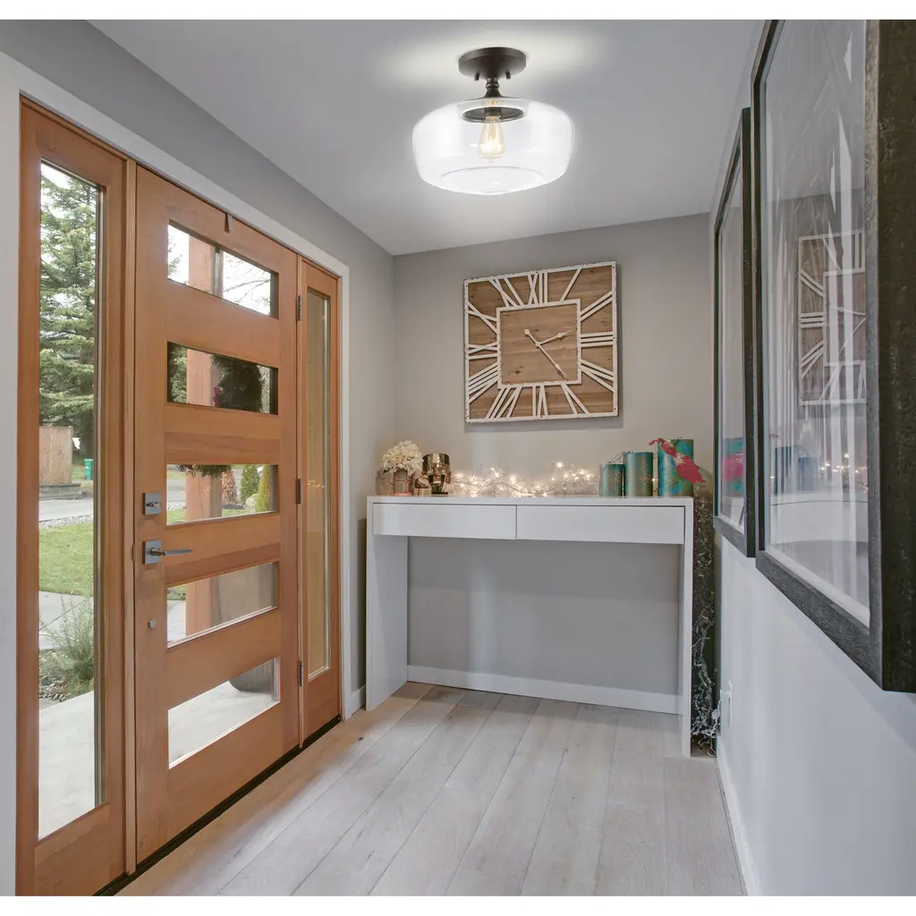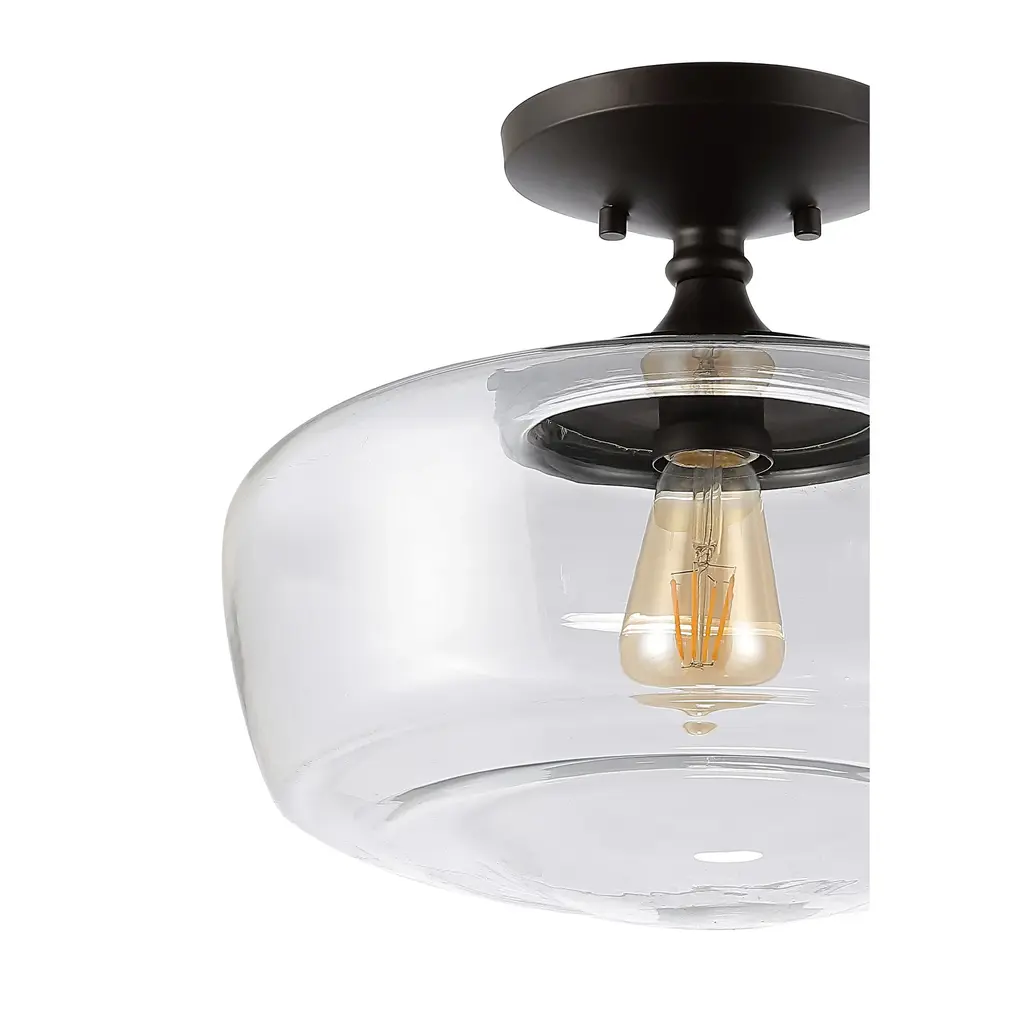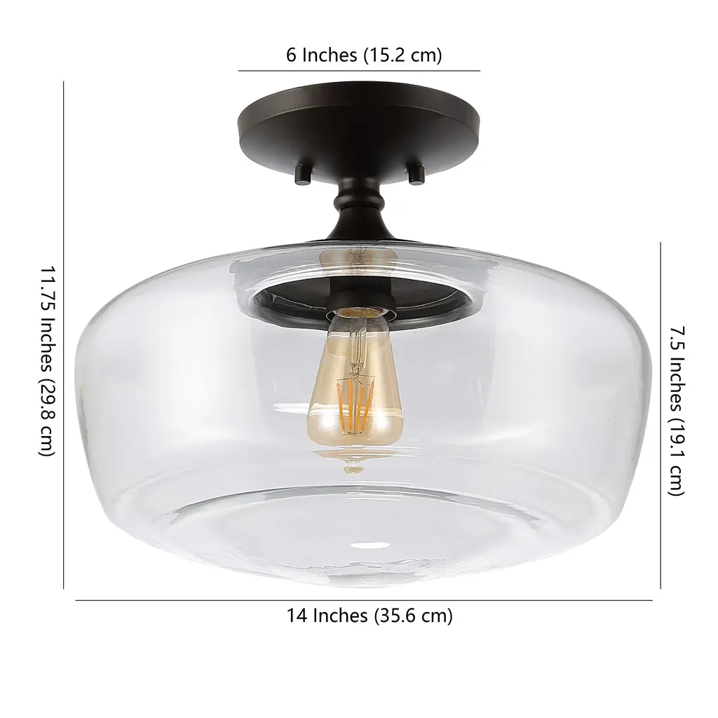 Bring on the farmhouse style with this ceiling light. The schoolhouse-inspired clear glass and Edison-style LED bulb add vintage flair. This ceiling light is a classic for the family room, entry, hallway, kitchen or bedroom. Features:Dimensions:About us:You see a lamp.We see a decorative work of art.A perfectly curved shade casts a dramatic shadow on a floor. Compatible with LED lightbulbs: as easy on the environment as they are on the eyes. The JONATHAN Y Lighting collection considers every detail from impeccably sourced materials to designer styling. And our prices are so attractive, we've transformed a functional necessity into a fashion accessory.JONATHAN Y Lighting - a fashion revolution in home decor.