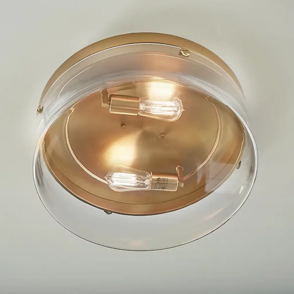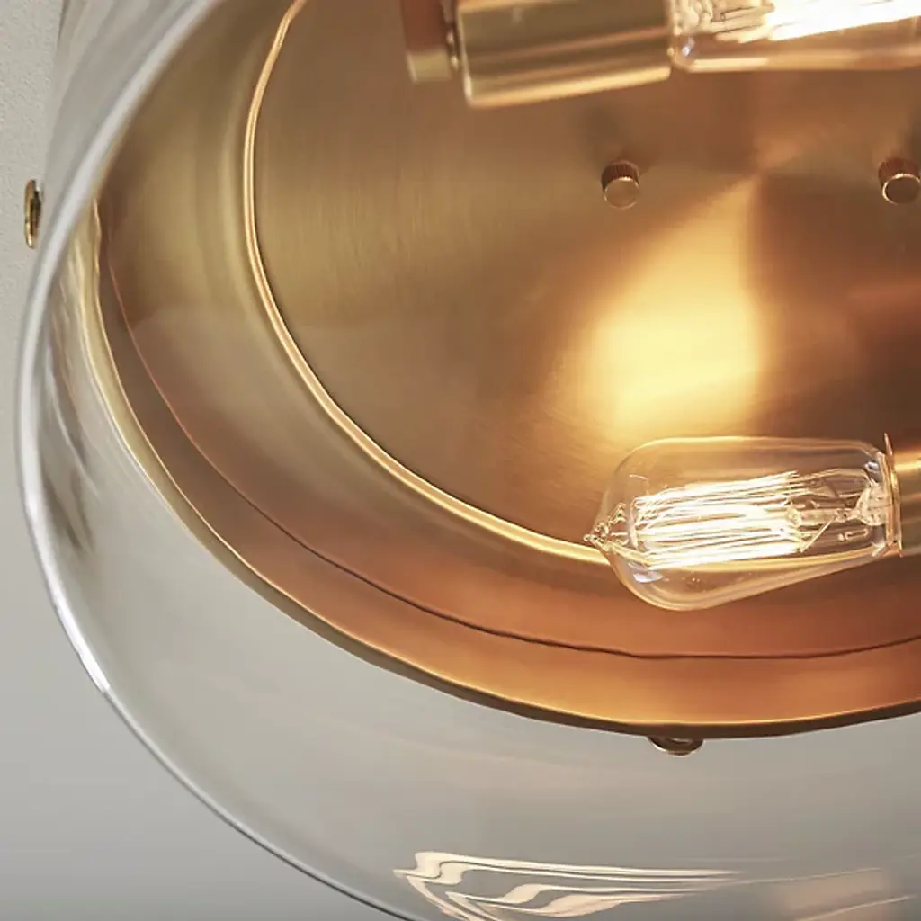 The best Flushmount around for fans of an understated yet luxurious style. The Garrett Flushmount by Visual Comfort Studio, formerly known as Chapman & Myers, will fill your chosen room with not only powerful lighting, but also a simultaneously rugged and graceful look. Contrast is an essential part of this fixture's beauty, with a transparent Glass shade providing a counterpoint to the luster provided by the piece’s Metal frame at the top. Featuring dimming capabilities and a damp rating, this piece offers versatility in its placement and the amount of light it emits.