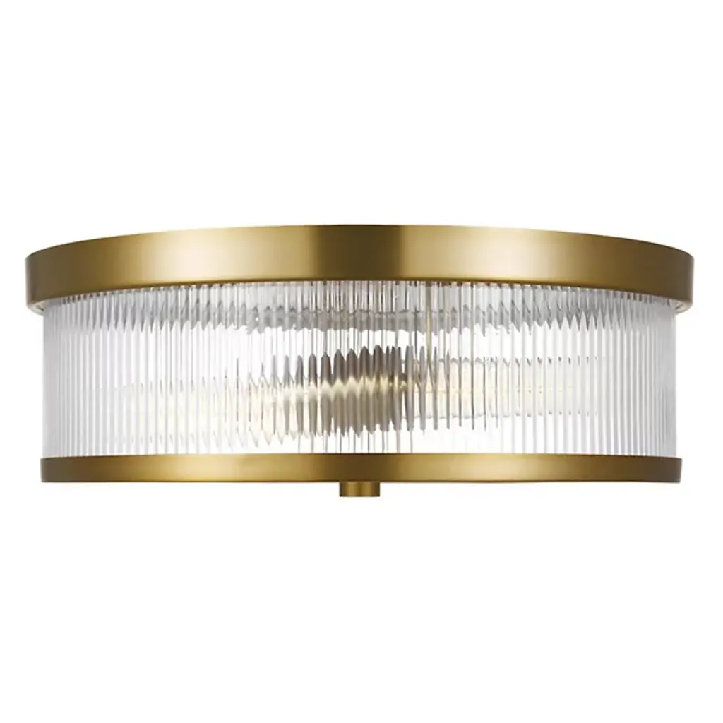 The Geneva Flushmount by Visual Comfort Studio, formerly known as Chapman & Myers, brings a simply structured silhouette that has a sophisticated look to spaces. This round fixture features a lovely rippled glass shade that is neatly framed by a pair of sleek metal bands dressed up with a beautiful finish. Diffusing a warm and welcoming layer of light onto surroundings, this flushmount is completed with a minimal finial and makes an elegant statement in the spaces it brightens.