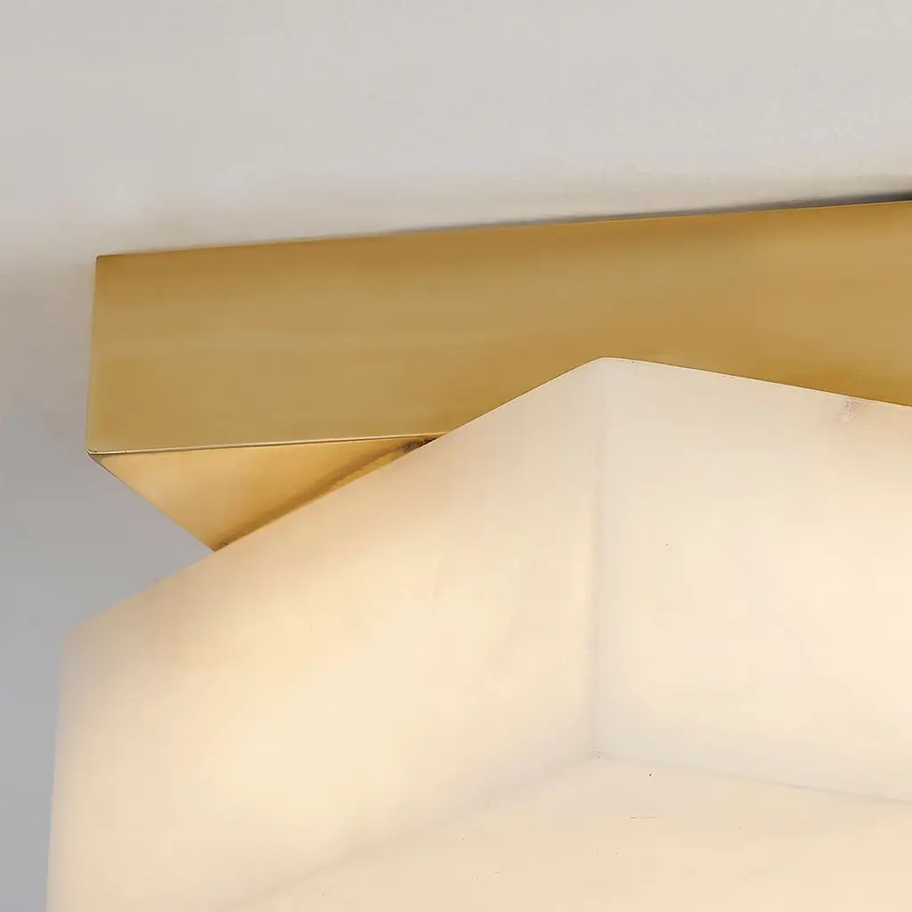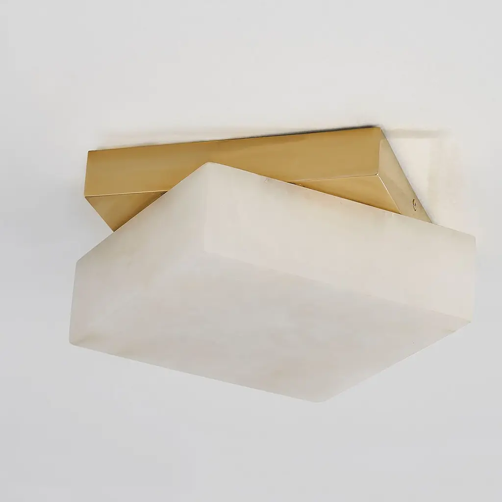 Genna 11.5" Alabaster Flush Mount, White/aged Brass