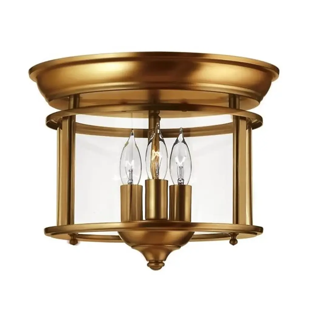 Gentry 3 Light 11.5 Inch Heirloom Brass Indoor Flush Mount Ceiling Light
