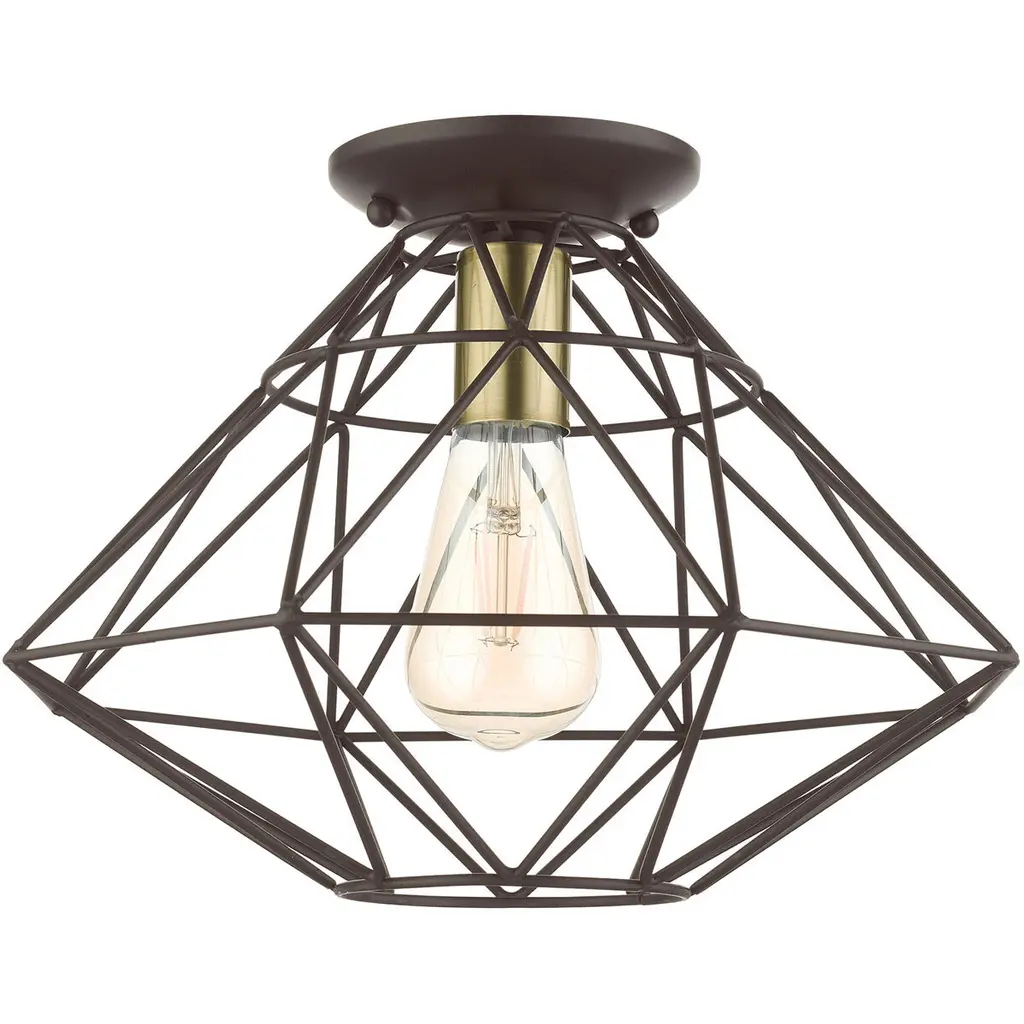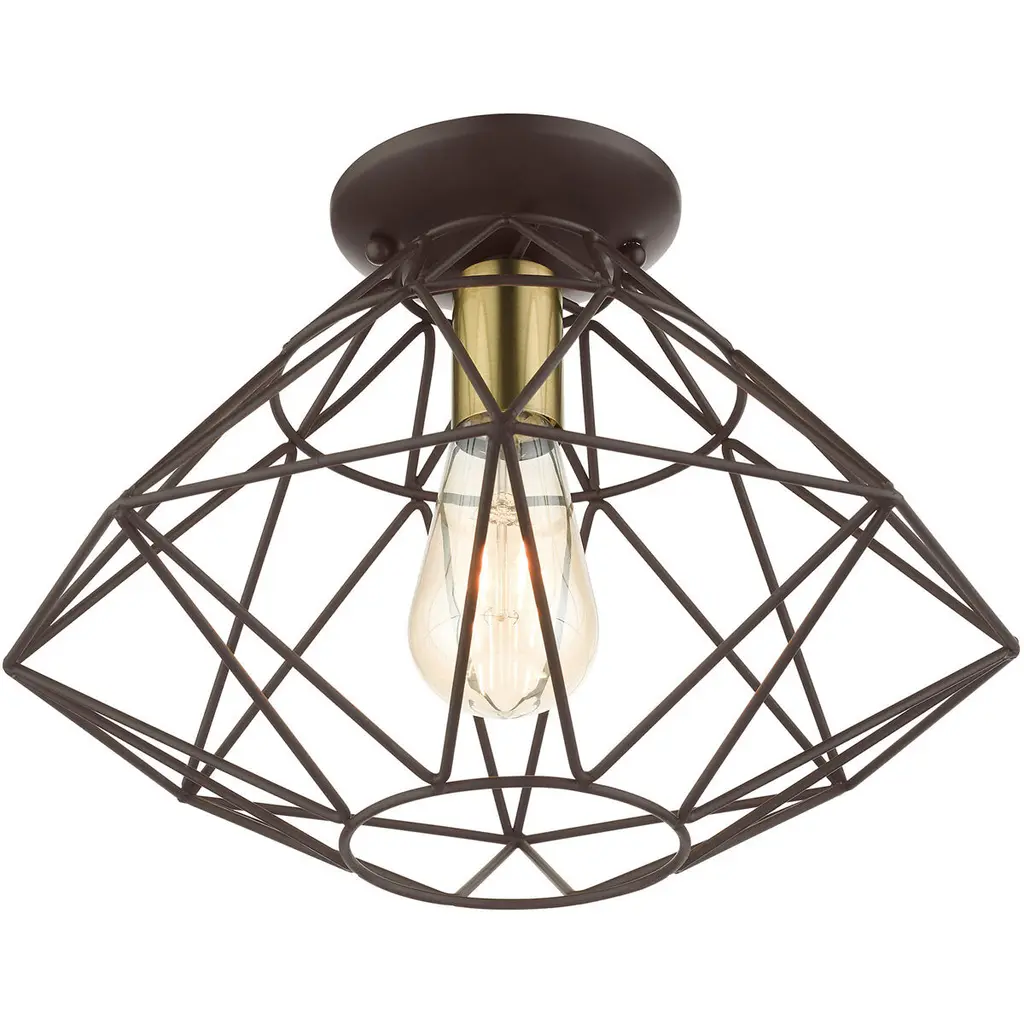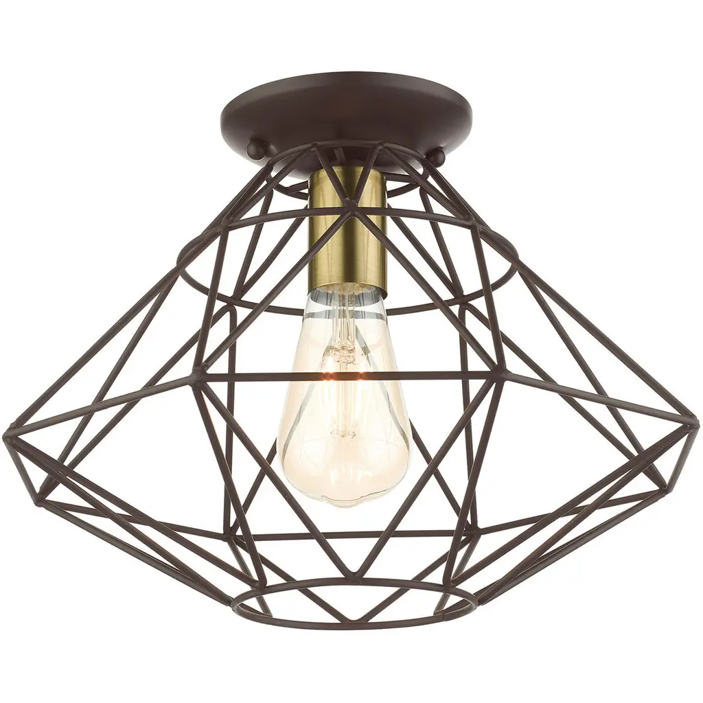 Geometric 1 Light 14 Inch Bronze Flush Mount Ceiling Light