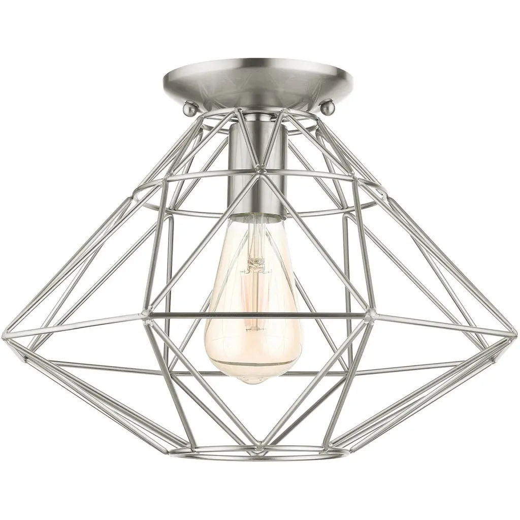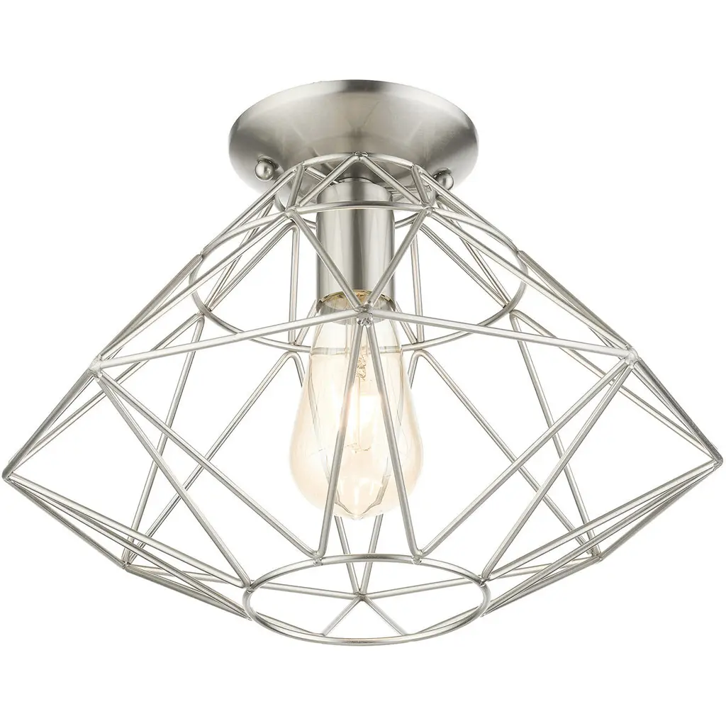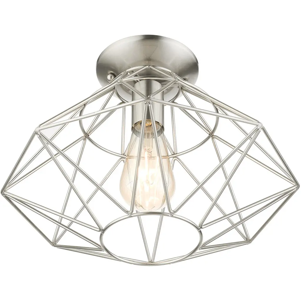 Geometric 1 Light 14 Inch Brushed Nickel Flush Mount Ceiling Light