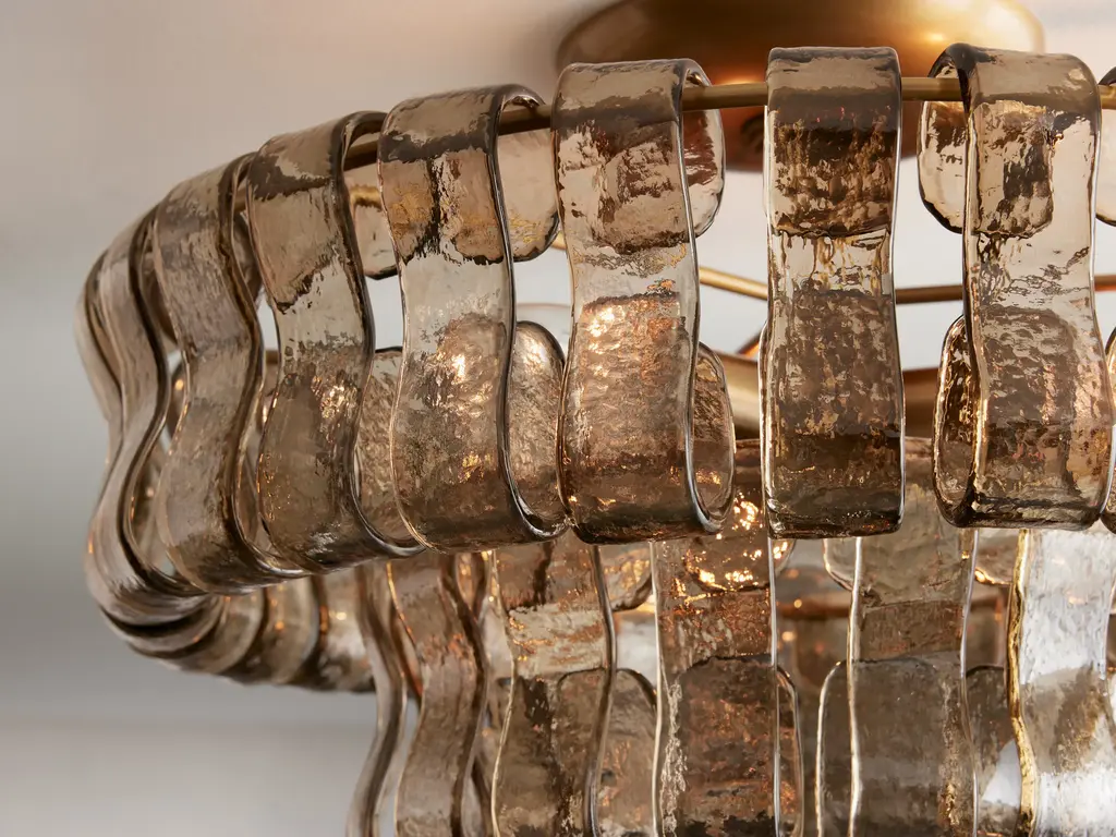 Inspired by the timeless beauty of Italian glass artistry, our Ghiaccio Collection pairs curved, textured glass panels in a range of luminous tones with gracefully layered forms. Finished with your choice of brass or bronze, each piece casts a warm, dimensional glow that fills any room with soft illumination and sculptural elegance.