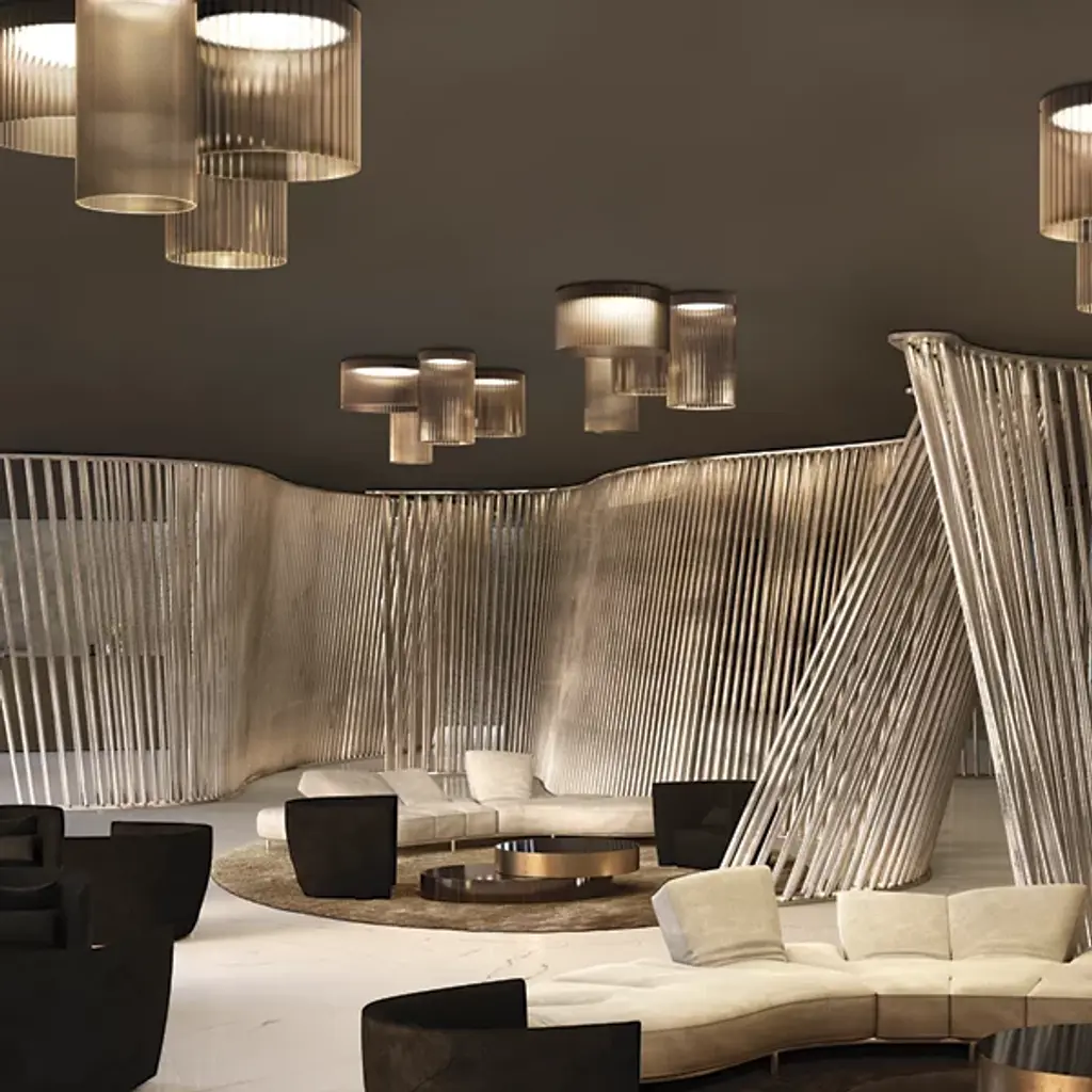 Presented by Kdln and designed by Sebastian Herkner, the Giass LED Flushmount is inspired by a tumbler glass of ice, or “giass” in Milanese. It boasts eco-friendly appeal with integrated LED for a longer lifespan and lower energy consumption than traditional lighting units. Composed of metal and glass, the Giass easily elevates the look of an interior with enlightened design, featuring endless reflections and iridescent light. Display as a solo piece or in multiples to animate locales of choice.