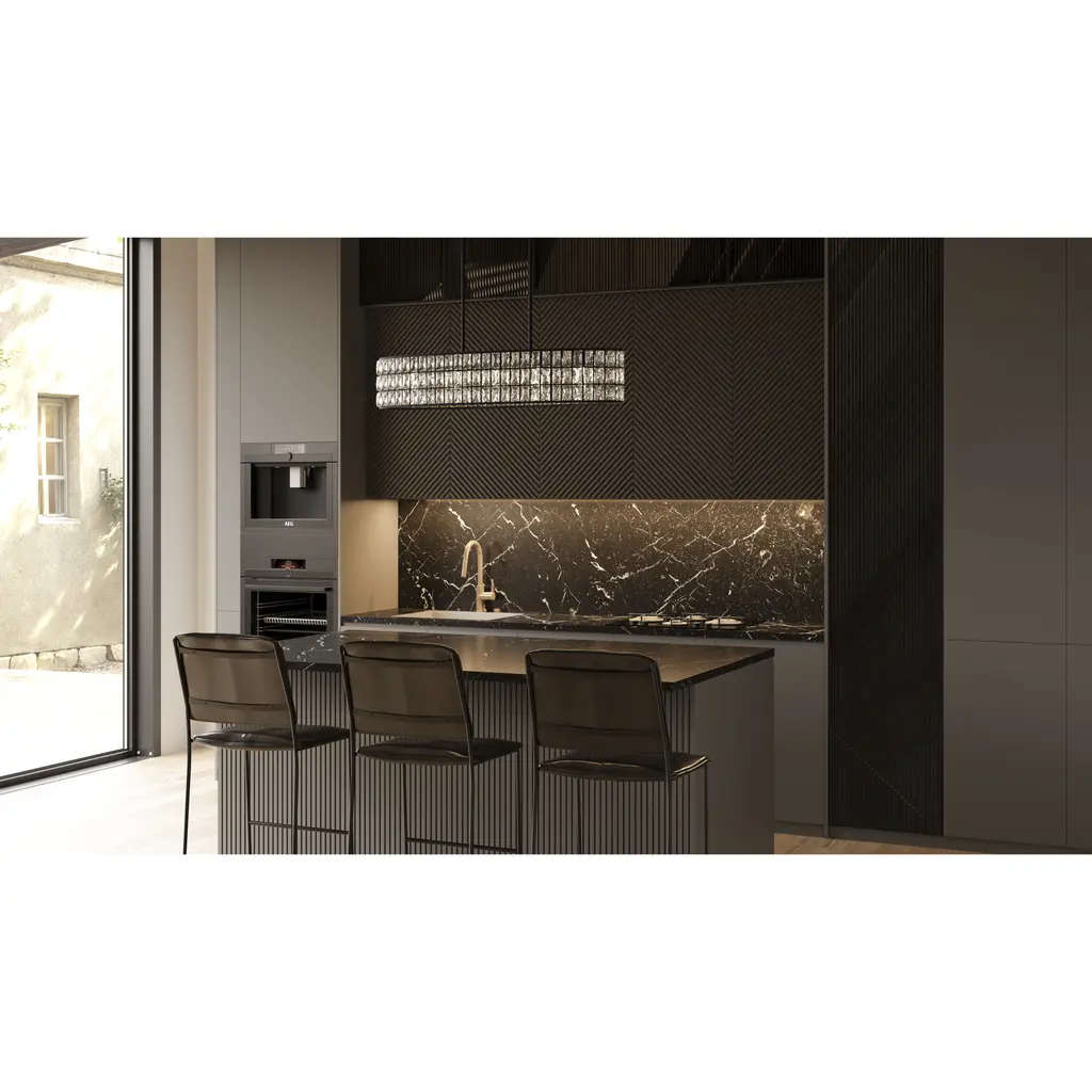 Add instant mystique and luxury to your home with Gibson. Clear beveled crystal shades create a dazzling play of shadow and light, paired with your choice of a matte black or polished chrome finish. Choose from a variety of style options in this glamourous collection - available as a flush mount, pendant light, linear chandelier, or bath light.
