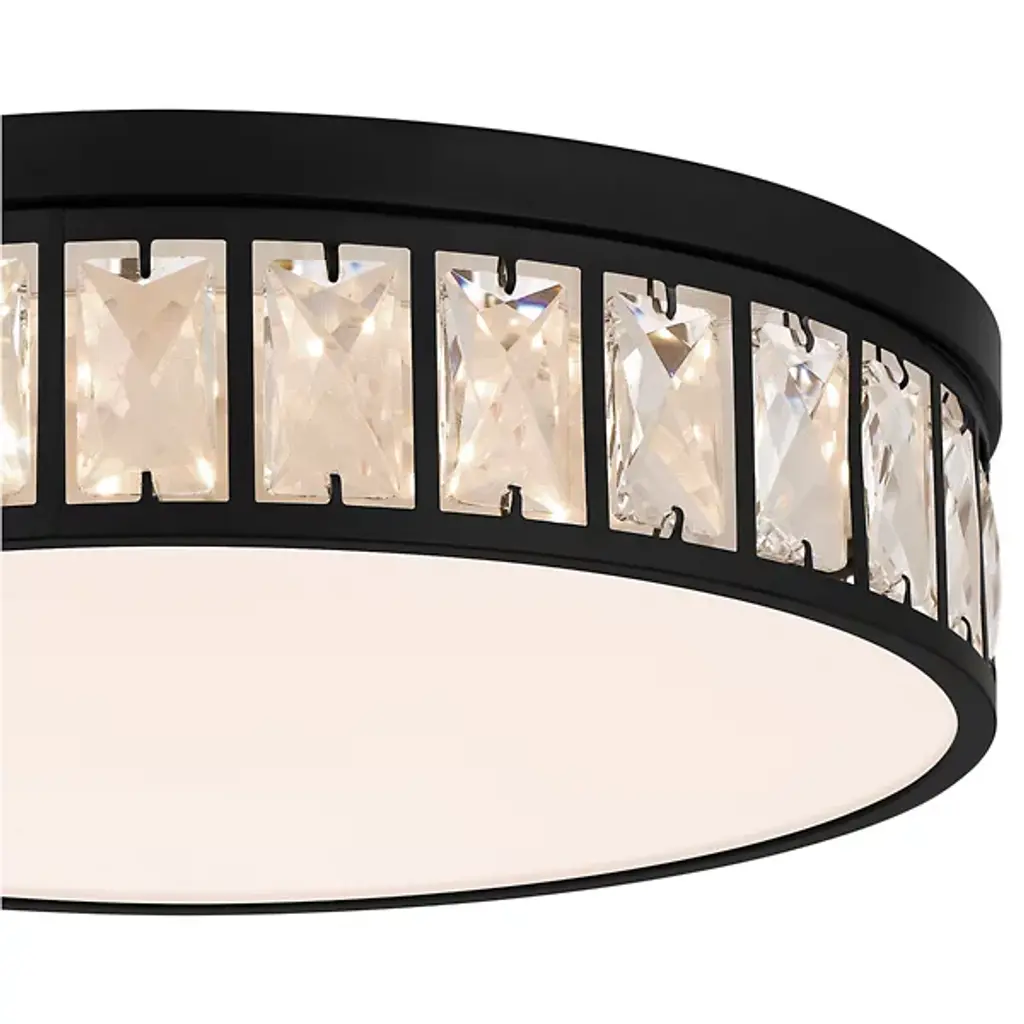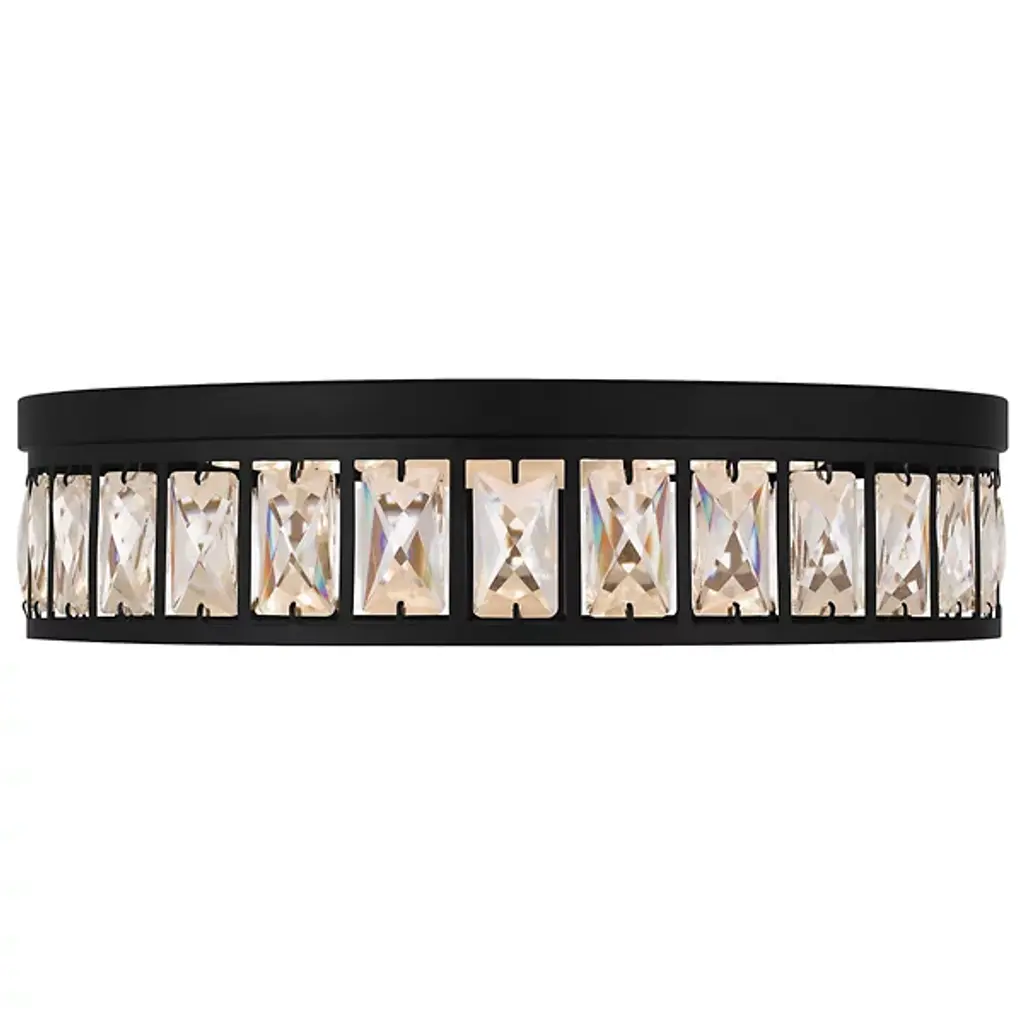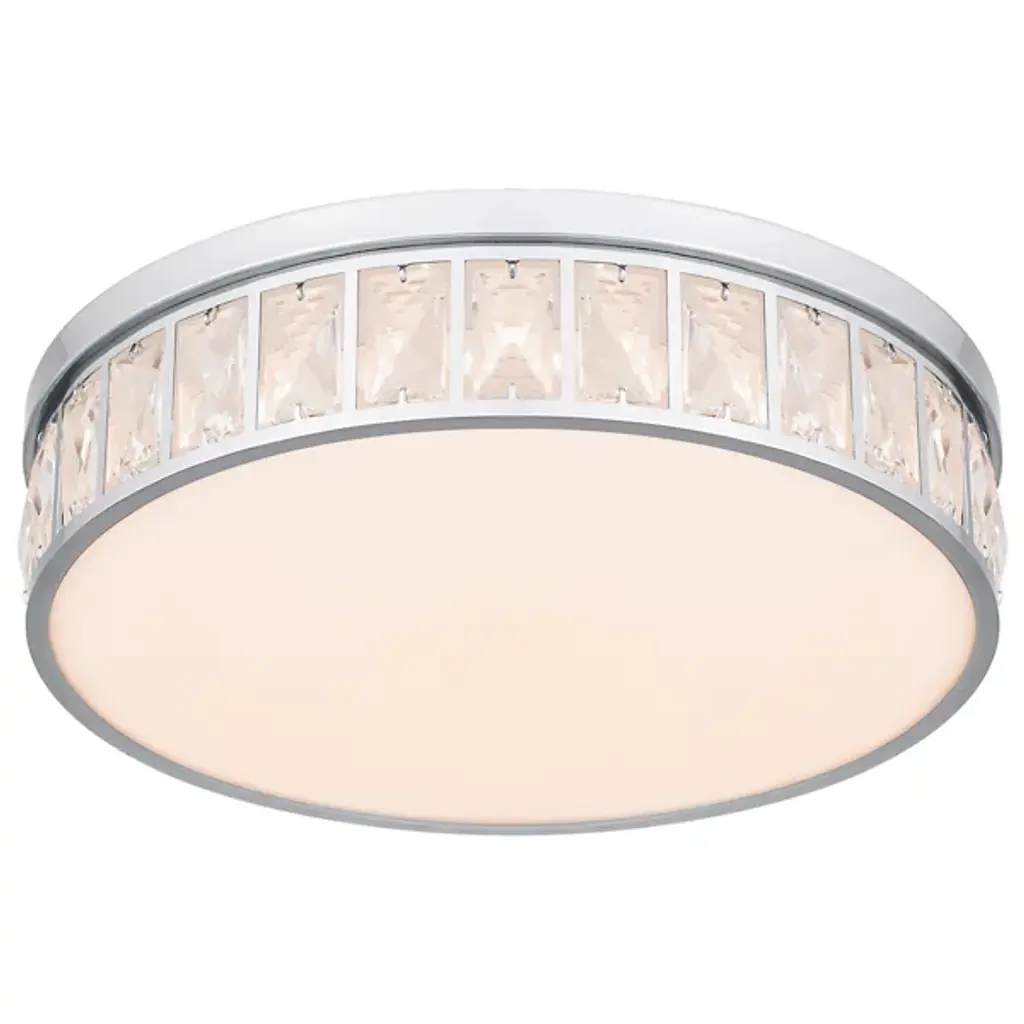 The Gibson LED Flushmount from Quoizel boasts a streamlined drum shape and transitional style. The beveled clear crystal glass shades create a mesmerizing effect, casting a soft, radiant glow that illuminates your living space with effortless charm. Designed to impress, Gibson is powered by -efficient, integrated LED technology. Plus, with its dimmable functionality, you can easily adjust the brightness to suit your mood using a separately sold ELV dimmer.
