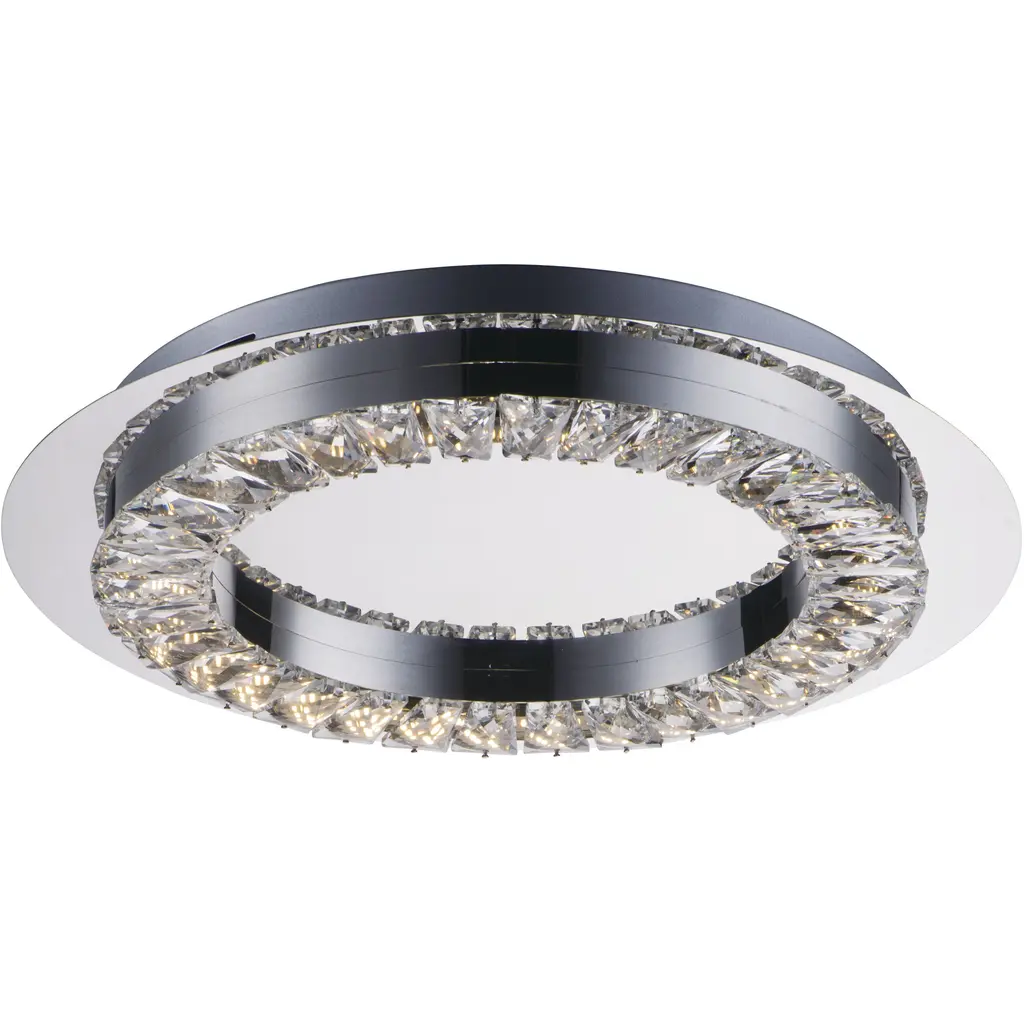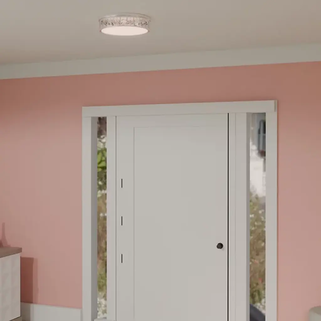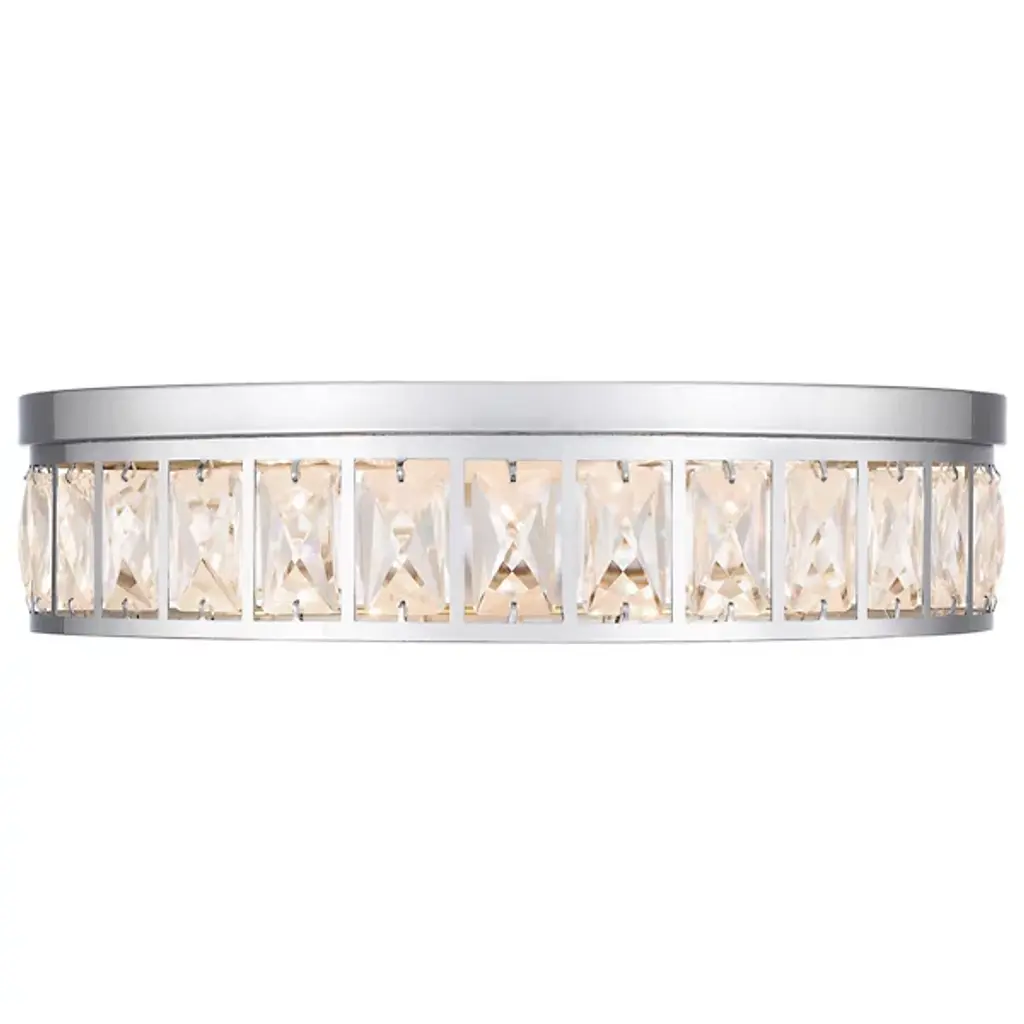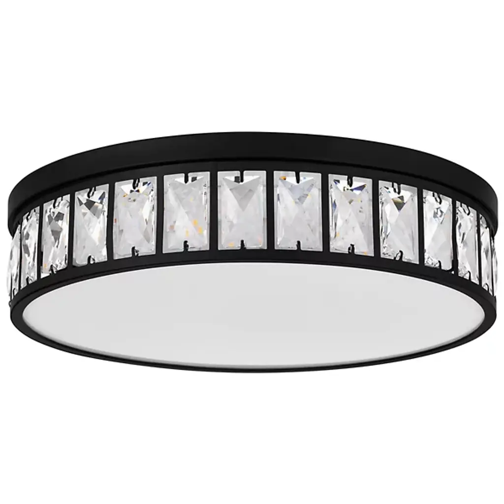 The Gibson LED Flushmount from Quoizel boasts a streamlined drum shape and transitional style. The beveled clear crystal glass shades create a mesmerizing effect, casting a soft, radiant glow that illuminates your living space with effortless charm. Designed to impress, Gibson is powered by -efficient, integrated LED technology. Plus, with its dimmable functionality, you can easily adjust the brightness to suit your mood using a separately sold ELV dimmer.