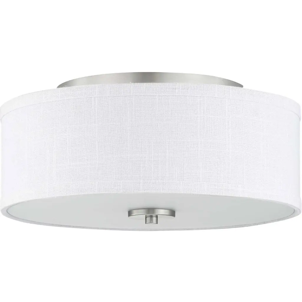 Harkening back to a simpler time, the Inspire Collection freshens traditional forms with flowing lines. The LED flush mount fixture features an etched glass diffuser with a summer linen shade finished with Brushed Nickel details. This fixture is suitable for a variety of design styles, including Modern, Traditional and Farmhouse and the simple design is a perfect complement to a variety of fixture collections.