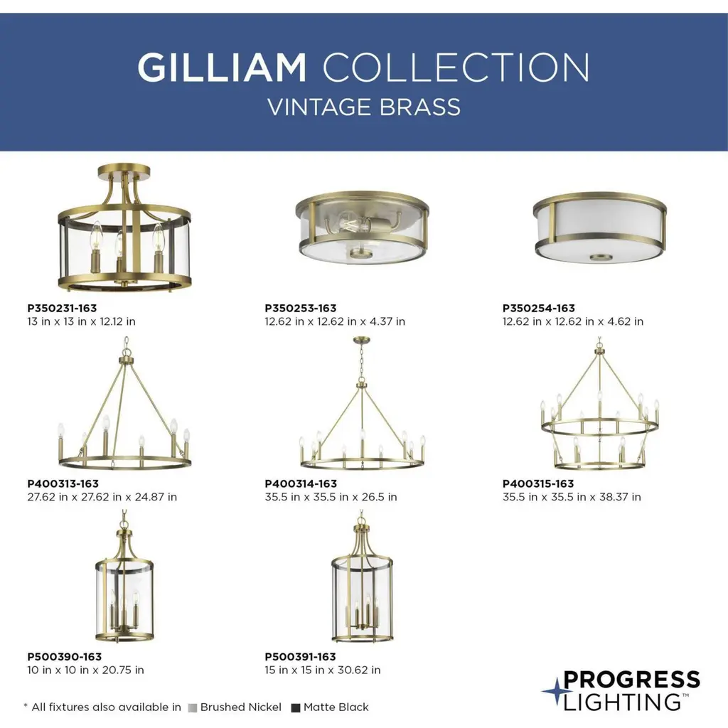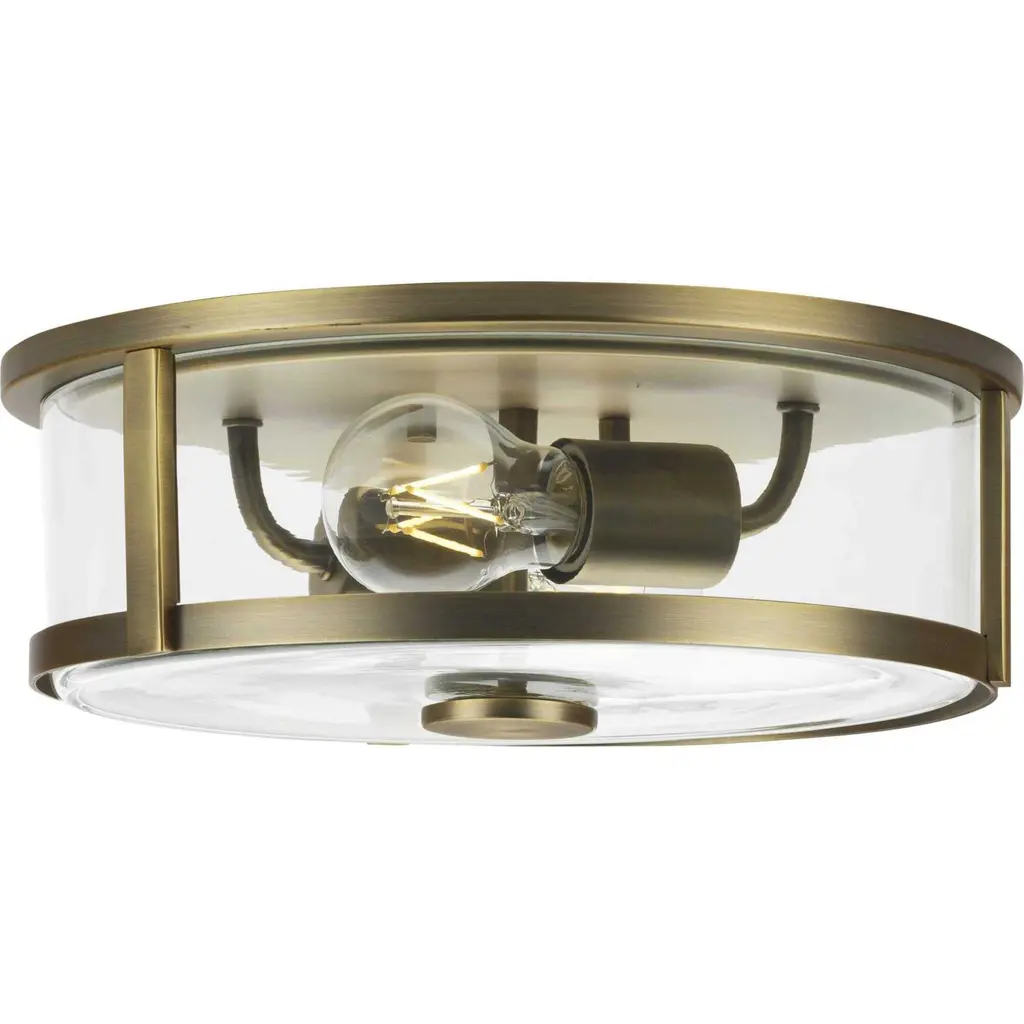 Gilliam 2 Light 12.62 Inch Vintage Brass Flushmount Ceiling Light