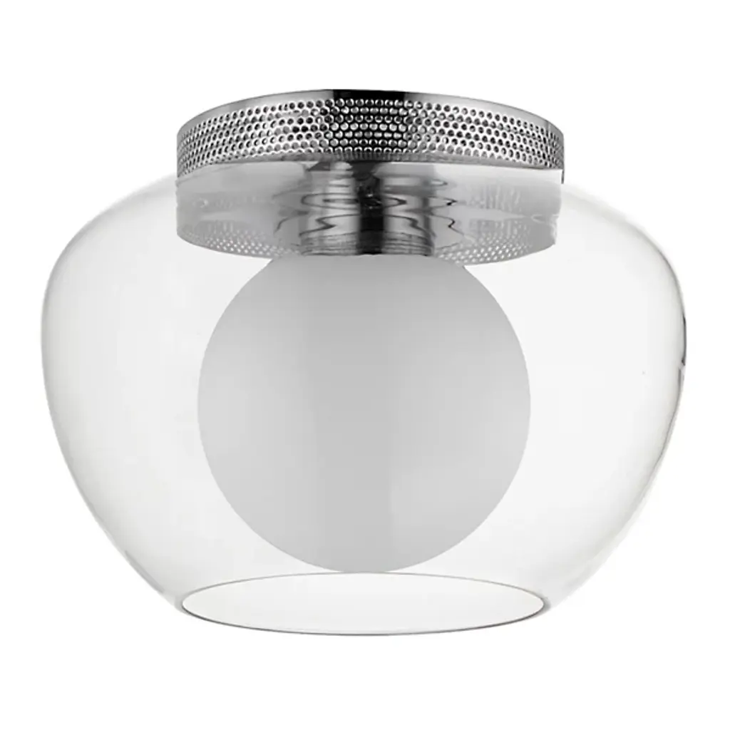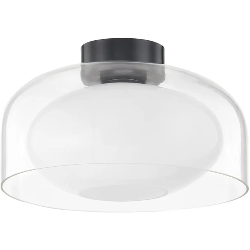 The Giovanna Flushmount from Mitzi offers a tasteful, enduring appeal to interiors. Well-suited to low-ceilinged spaces, it uses a circular metal canopy to secure a clear glass bowl shade around a translucent inner shade, lending a captivating splash of modern refinement. The layered arrangement of both shades moderates the bright glare from the lamping, transforming it into a mix of glittering spectacle and even ambiance, reflecting off the rounded metal above.