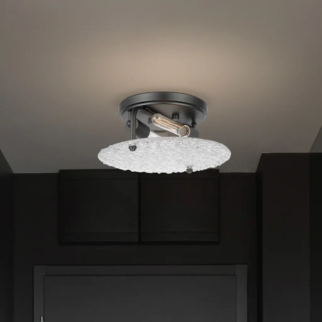 Glacier 2-Light Large Flush Mount - Medium Base - 60 Watt - Matte Black - Ice Glass